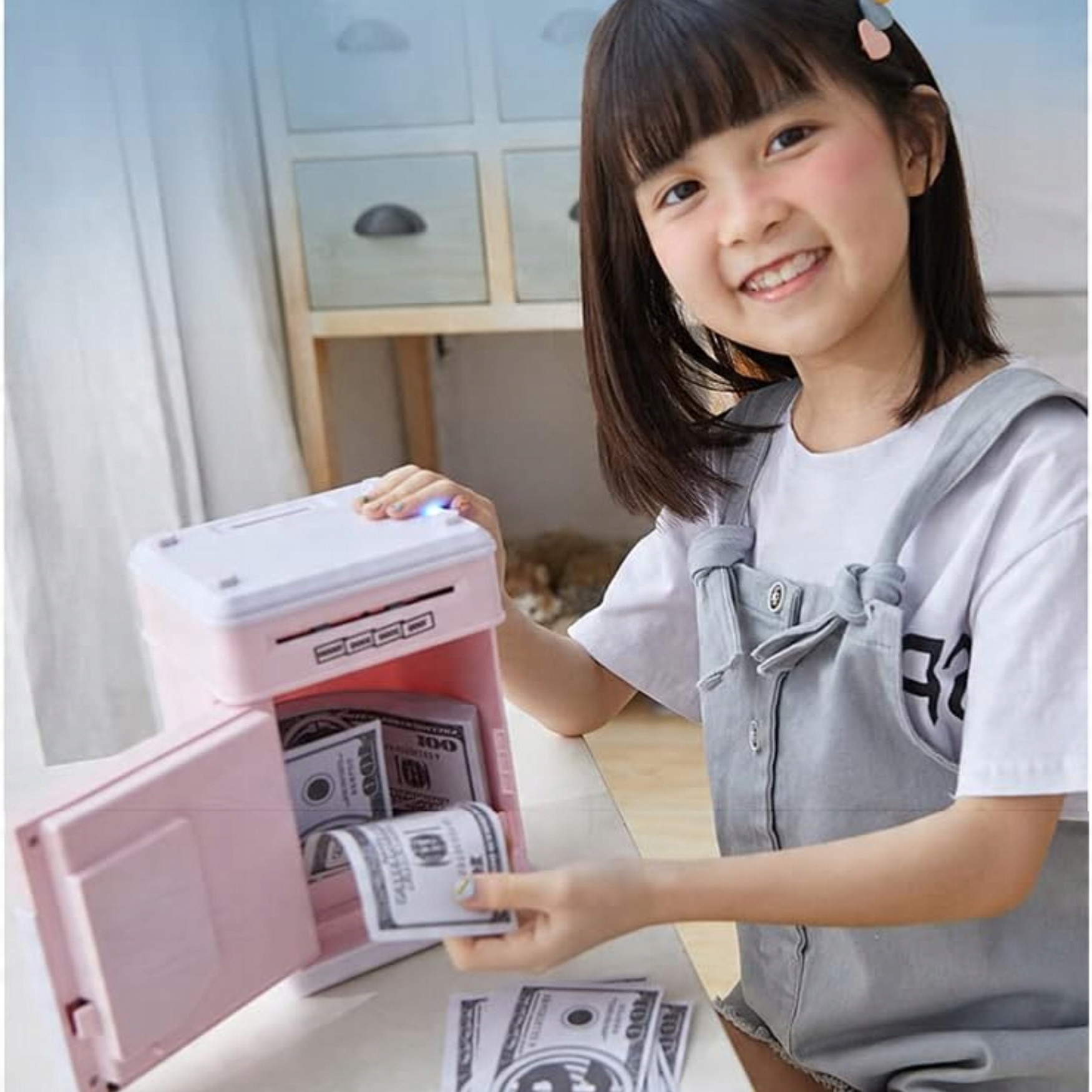 ❇️Автоматичне прокручування грошей - Як міні-банкомат! Наша скарбничка – справжній хіт! Вставте банкноту в передній отвір і... подивіться, як вона чарівним чином зникає всередині, заохочуючи вас зберегти b>. А монети? Просто киньте їх зверху. Це просто, весело і... набагато цікавіше, ніж звичайна скарбничка!