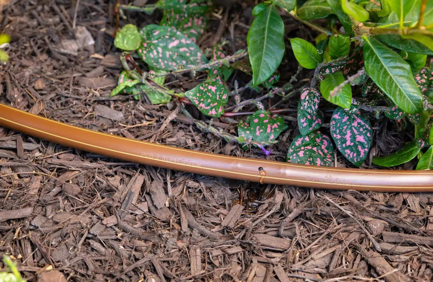Коричнева лінія крапель із компенсацією дощової птиці на 100 м. Він відрізняється винятковою гнучкістю та стійкістю до зривів. Двоє -шарова труба (коричнева зовні, чорна всередині) стійка до УФ -випромінювання, подрібнення водоростей та дії хімічних речовин. Побудовані випромінювачі мають функцію автоматичного промивання (рухома мембрана постійно промивають під час кожного циклу зрошення) та високу стійкість до засмічення, завдяки використанню широкого шляху потоку. Компенсація тиску забезпечує постійні витрати на воду з усієї довжини кабелю.