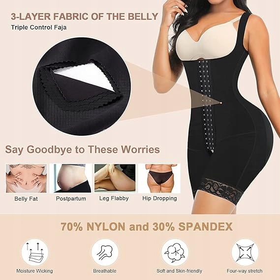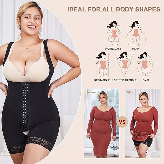 Формуючий боді FeelinGirl - це поєднання ефектного моделювання тіла та зручності носіння. Висока талія та міцні панелі для схуднення допомагають вирівняти живіт і окреслити талію, створюючи ефект пісочного годинника. Три ряди гачків забезпечують ідеальну посадку, а широкі лямки зменшують тиск на плечі та забезпечують стабільність протягом дня. Відкритий промежину полегшує користування туалетом, не знімаючи боді, а ніжне мереживо на ніжках запобігає скочування матеріалу. Пудрово-коричневий колір елегантний і стриманий під одягом.
