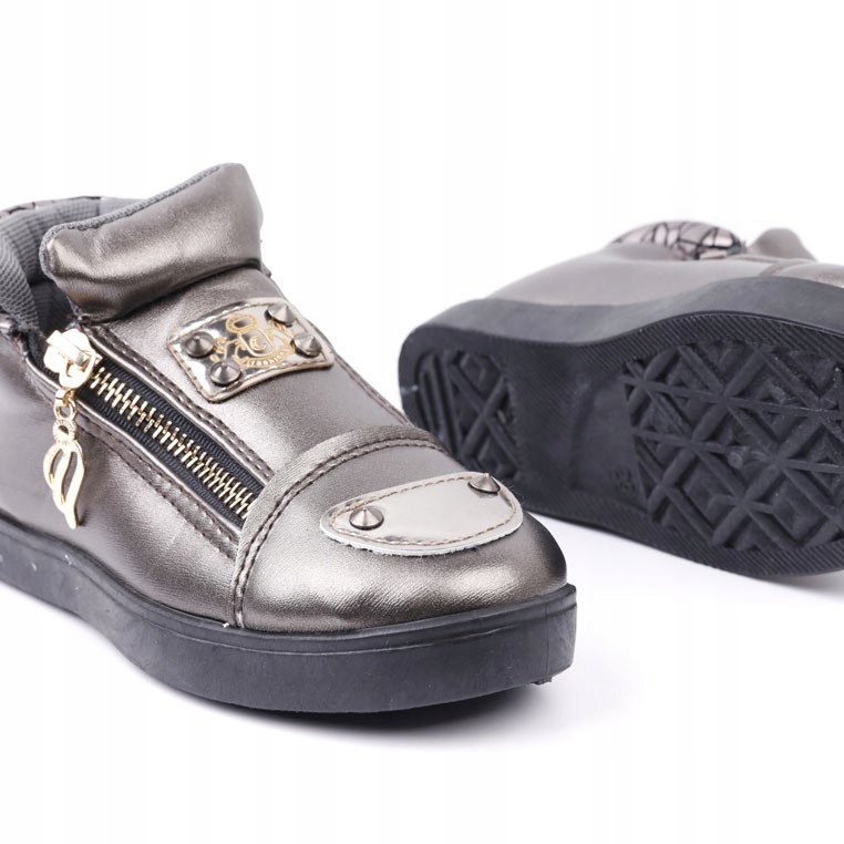 Черевики для дівчат на плоскій підошві. Вражаючий металевий орнамент на носі та верхній. Зроблено з еко -ланцюга. Закріплений блискавкою зсередини. Не ізольована модель.