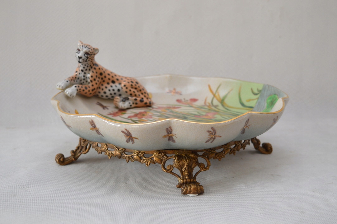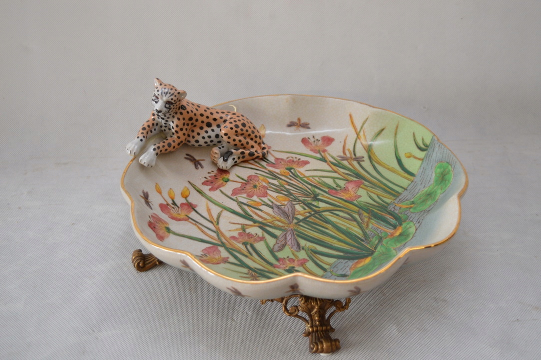 КОРИЧНЕВИЙ ФАРФОР ПАТЕРА розпис ПТАХИ