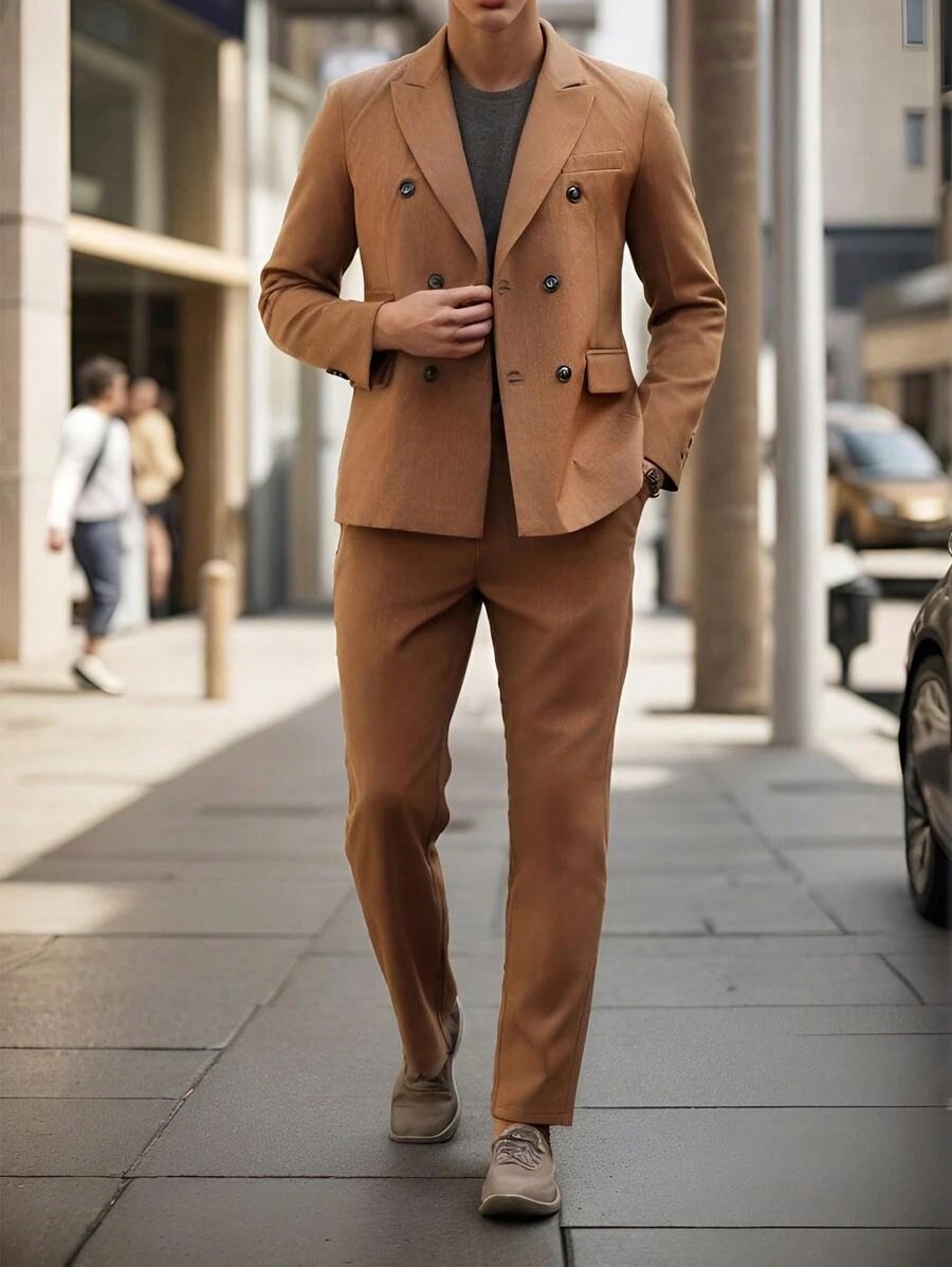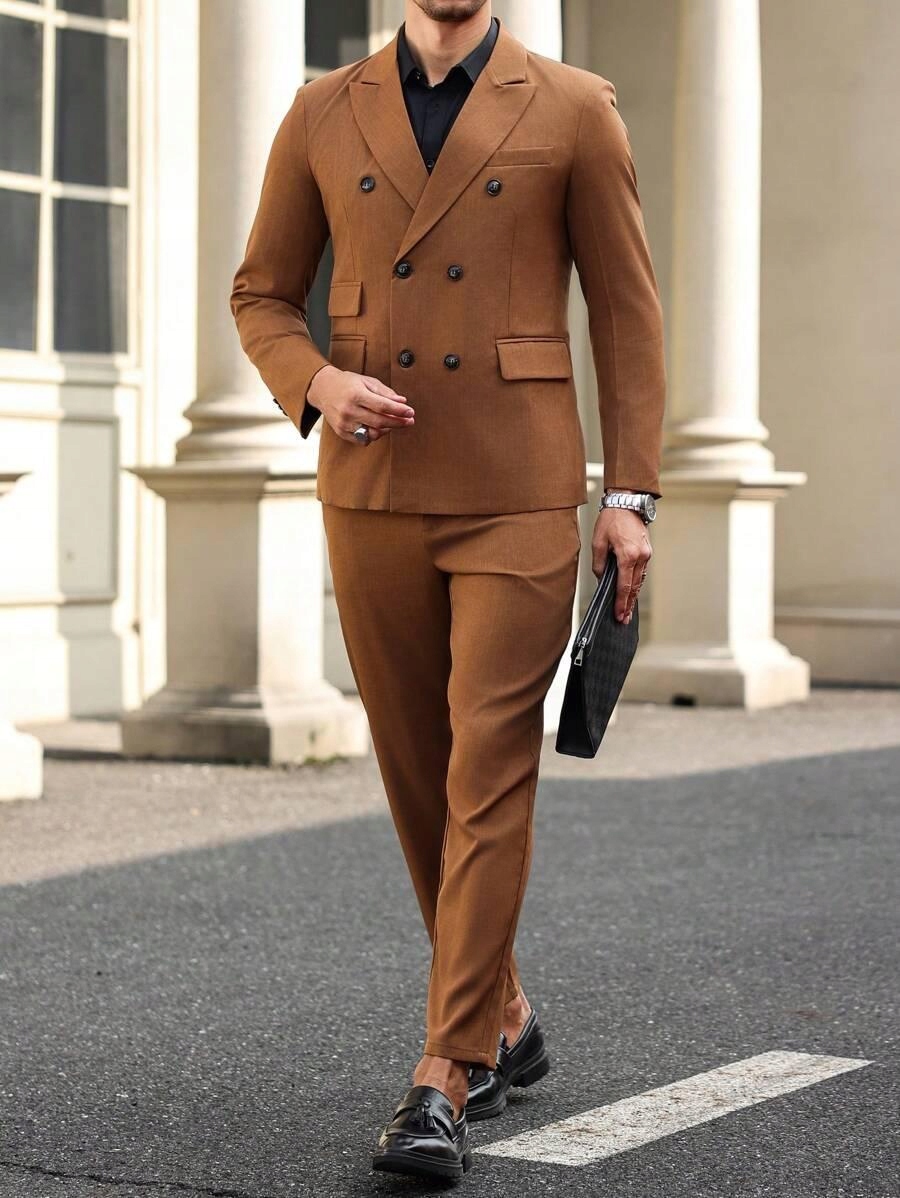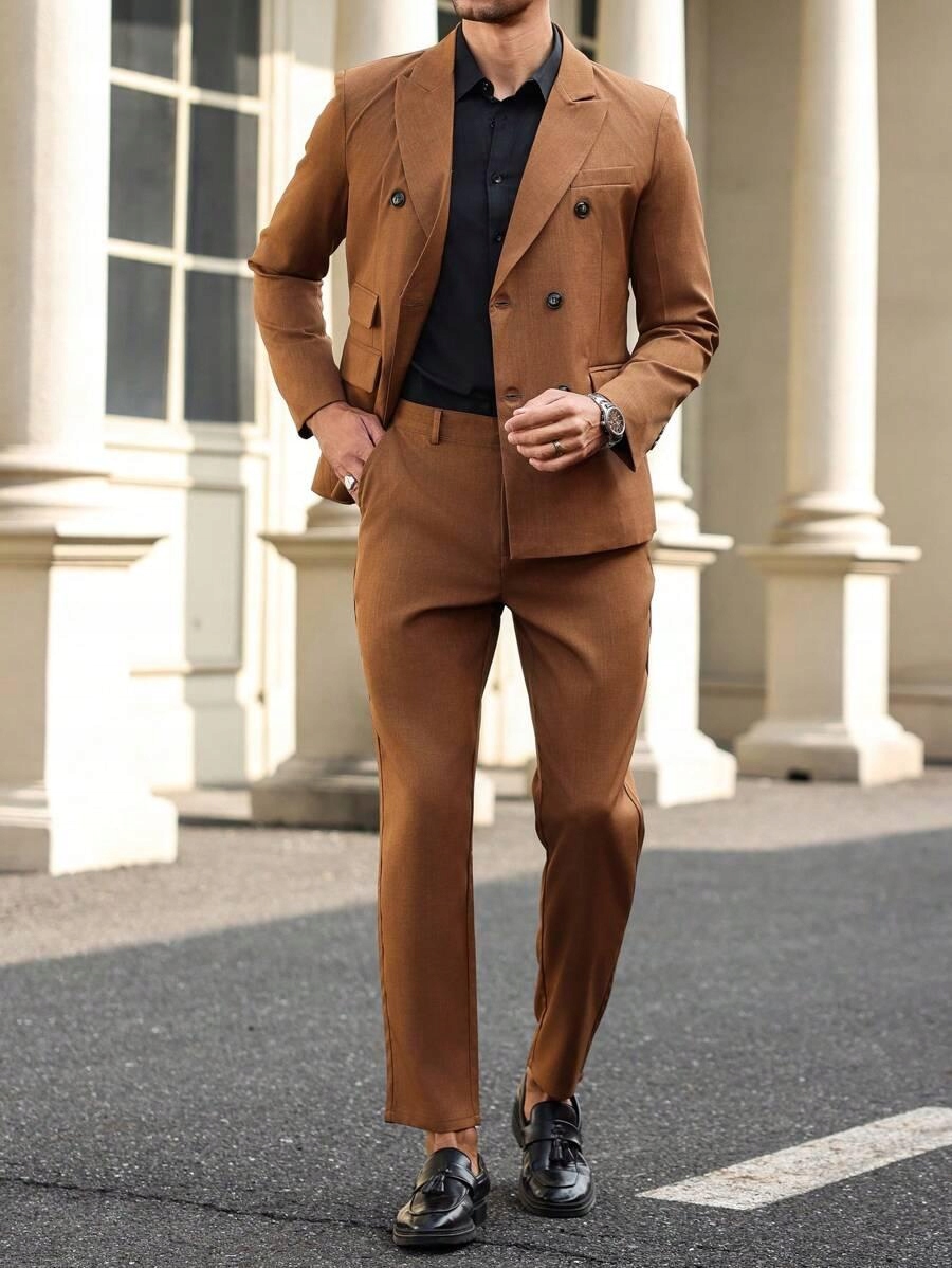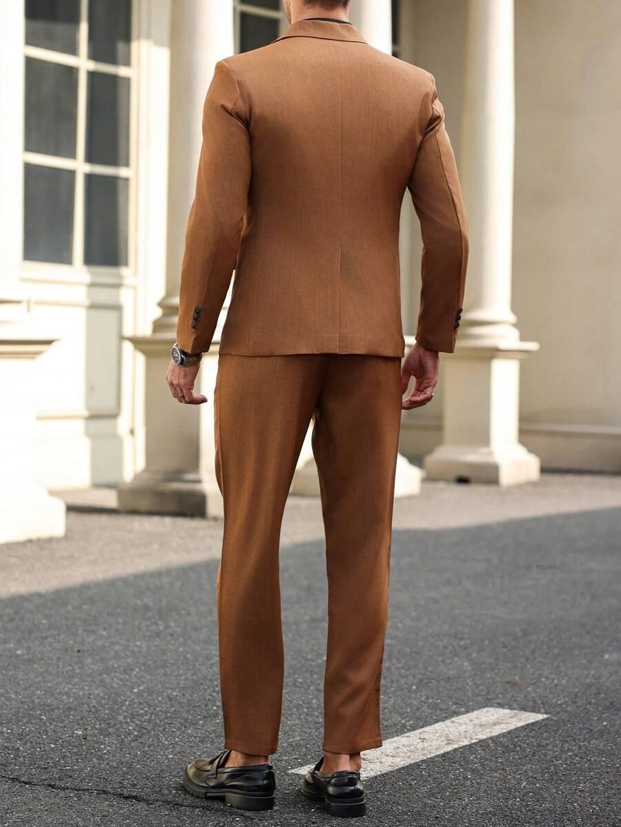 КОРИЧНЕВИЙ КЛАСИЧНИЙ КОСТЮМ ДВОБОРТНИЙ ПІДЖАК ЧОЛОВІЧНІ ШТАНИ S