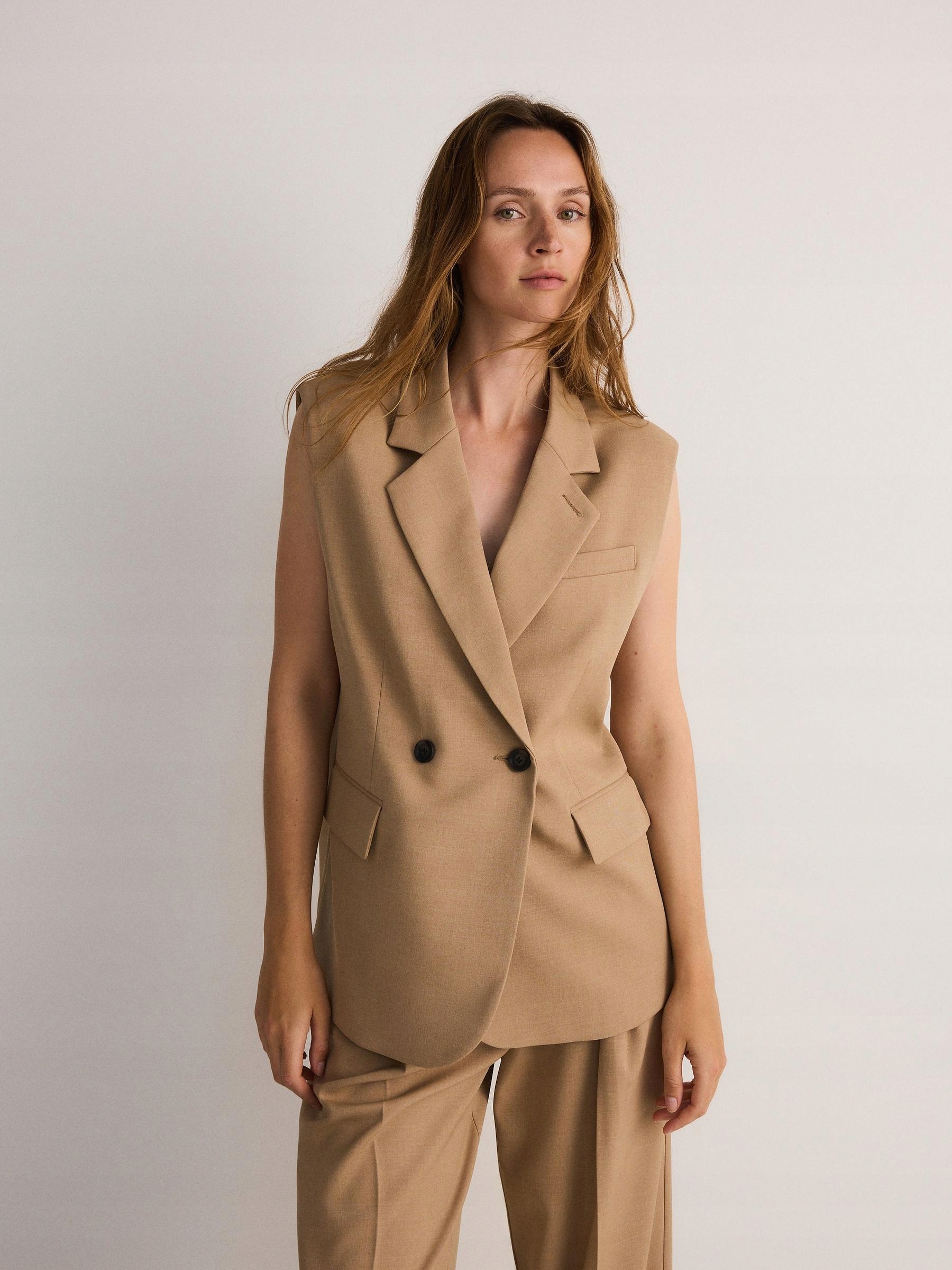Коричневий класичний подвійний жилет без рукавів.