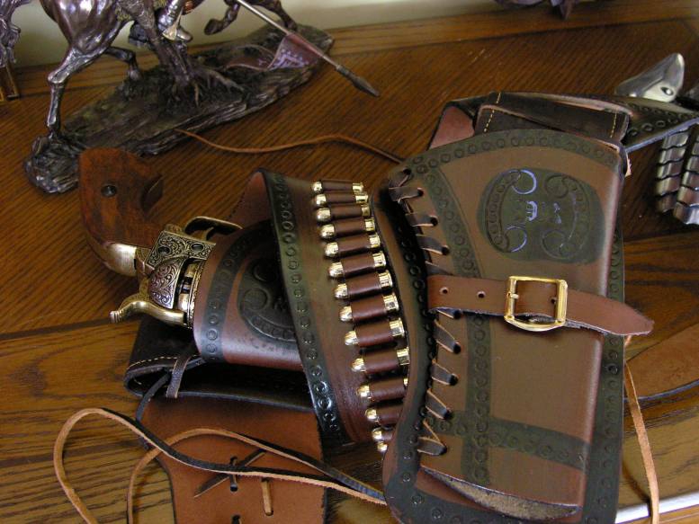 РЕМЕНЬ КОРИЧНЕВИЙ З ПАТРОНАМИ НА ДВА РЕВОЛЬВЕРИ, ШКІРА
