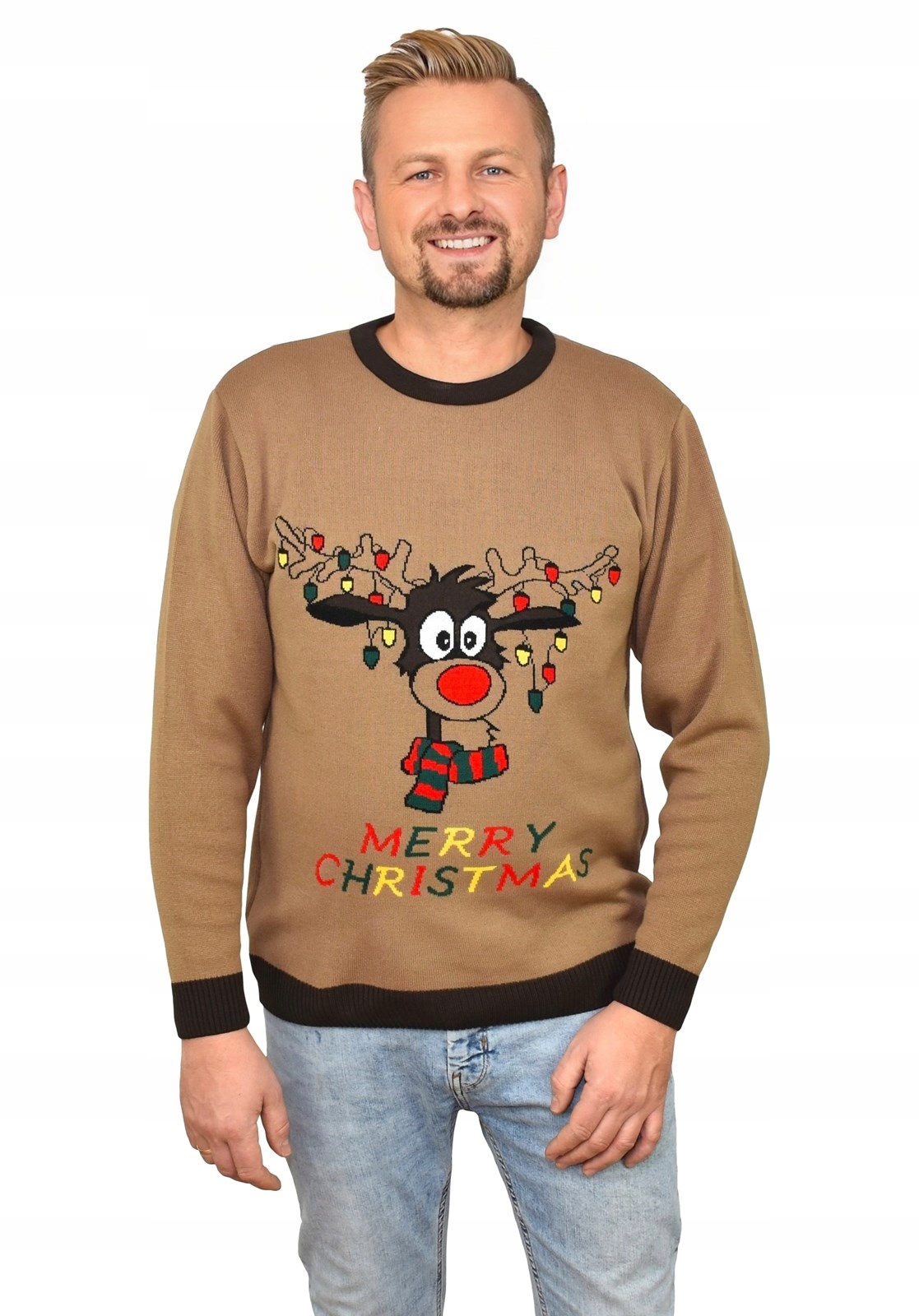 КОРИЧНЕВИЙ РІЗДВЯНИЙ ДЖЕМПЕР З ОЛЕНЯМИ РІЗДВЯНІ СВЕТЕРИ MERRY CHRISTMAS M
