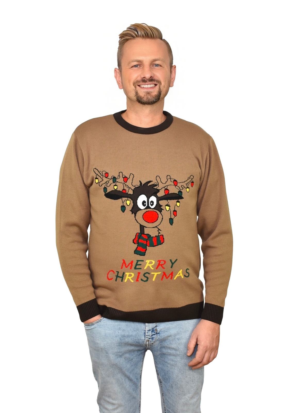 КОРИЧНЕВИЙ РІЗДВЯНИЙ ДЖЕМПЕР З ОЛЕНЯМИ РІЗДВЯНІ СВЕТЕРИ MERRY CHRISTMAS L