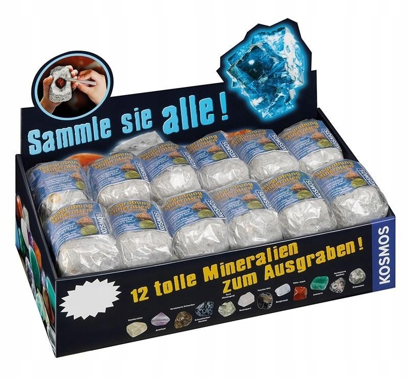 Космічний набір — мінерали та скам’янілості — ідеальна ідея для поєднання навчання з розвагою для юних дослідників. Набір складається з глиняного блоку із захованим у ньому мінералом і шпателів. Для виконання завдання також знадобиться вода.