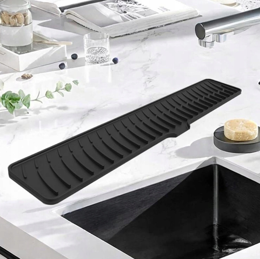 ✔️ Подовжений килимок під кухонним краном ефективно запобігає розбризкуванню води та зберігає стільниці сухими, забезпечуючи порядок і охайність.