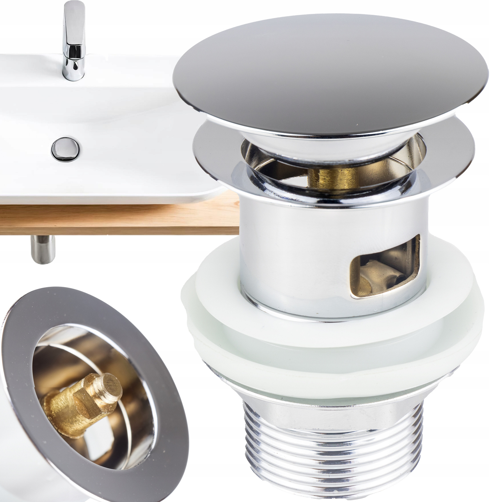❤️Korek click chrome clak for a washbasin washbasin with a transfer from brass ❤️ h1>