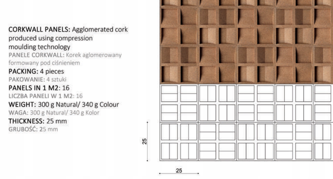 Corkwall - це колекція екологічно чистих 3D стінових панелей з натуральної пробки. Це поєднання унікального дизайну та турботи про навколишнє середовище. Поєднання високої якості та чесності матеріалу. Природно. Corkwall - унікальні стінові 3D панелі, які є не тільки унікальним доповненням, але й абсолютно по-новому додають затишку та неповторності вашому інтер'єру. Вони подбають про його акустику та мікроклімат. Вони будуть створені без шкоди для навколишнього середовища, що є нашим пріоритетом, і будуть біологічно розкладаними. І в той же час вони також дадуть вам незліченну кількість можливостей у створенні зовнішнього вигляду інтер’єру, забезпечуючи оригінальність.