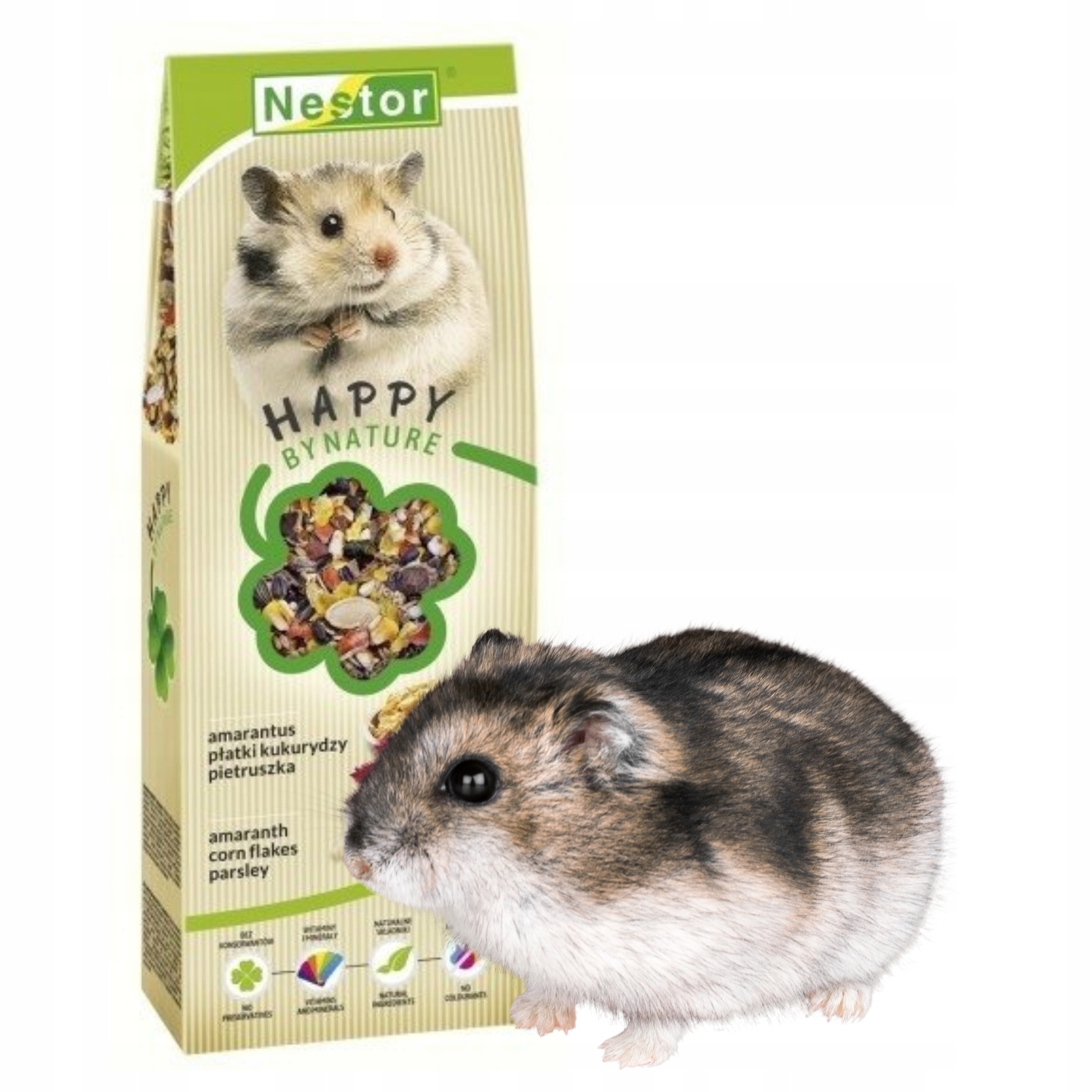 HAPPY BY NATURE - ідеально поєднаний і збалансований корм ПРЕМІУМ з апельсинами, морквою та амарантом, розроблений спеціально приготований для морських свинок. Суміш без штучних інгредієнтів, барвників і консервантів, ретельно відібрана відповідно до потреб і харчових потреб хом'яків, з силою, що витікає прямо з серця природи, підтримує їх здоров'я, стан і благополуччя.