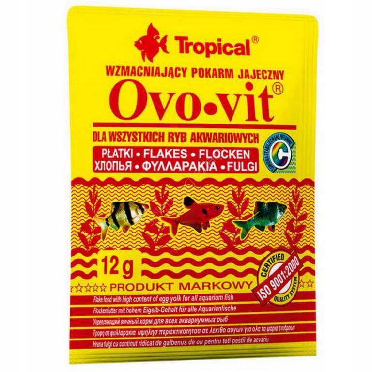 Багатокомпонентні пластівці з яєчними жовтками. Рекомендується як додатковий корм для більшості акваріумних риб. Значний вміст легкозасвоюваного білка, легкозасвоюваного лецитину з яєчних жовтків, а також вітамінів і мікроелементів підтримують ріст, дозрівання і нерест риби. Тому Ово-віт є незамінною добавкою до раціону нерестовиків, мальків і молоді. Його високу харчову цінність можна також використовувати в період реконвалесценції, коли риба потребує особливого догляду та високоенергетичного, легкозасвоюваного корму. Яєчні жовтки, що містяться в кормах, є не тільки джерелом цінного лецитину, а й ненасичених жирних кислот і природних каротиноїдних барвників, які посилюють колір риби.