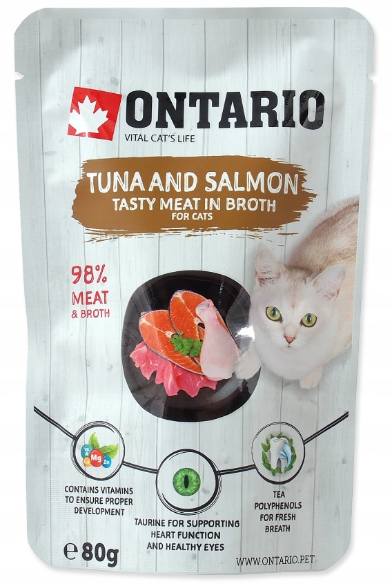 Ontario, вологий корм для котів, тунець і лосось в бульйоні 80г