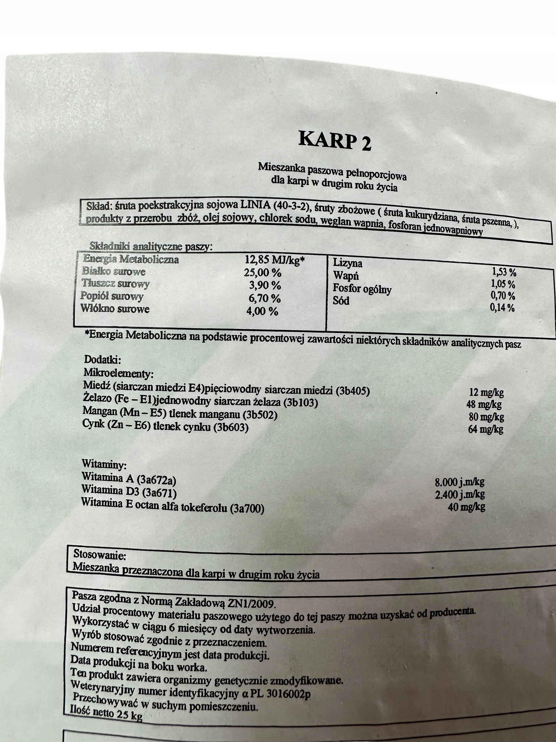 Оплачивая «Корм для риб, корм для риб 25% протеїн KARP 25 кг», вы можете быть уверены, что данное изделие из каталога «Продукты для рыбы» будет доставлено из Польши и проверено на целостность. В цене товара, указанной на сайте, учтена доставка из Польши. Внимание!!! Товары для Евросоюза, согласно законодательству стран Евросоюза, могут отличаться упаковкой или наполнением.
