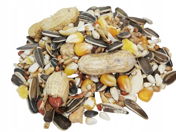 соняшник жирний смугастий, соняшник білий, сафлор barwierski (карді), пшениця, кукурудза Luigi CS, рис-пади, очищений овес, гречка, горіхи в шкаралупі, червоне сорго, пресована кукурудза, дарі, цілий арахіс, насіння гарбуза, сушена морква.