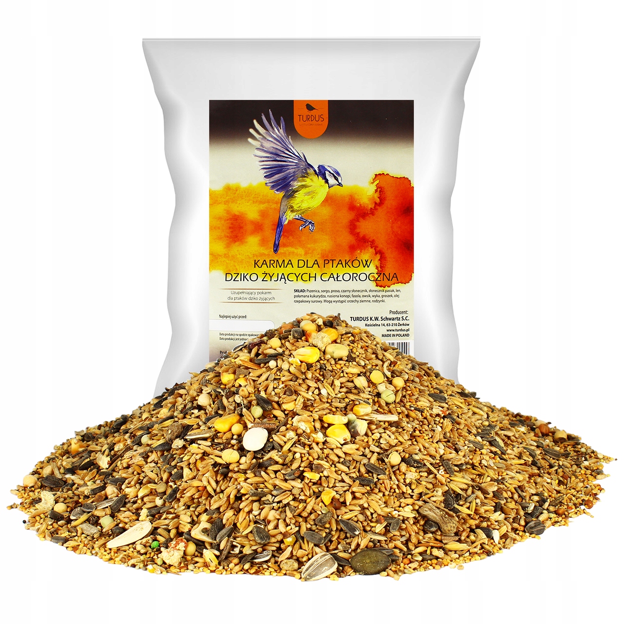 Повнораціонний корм виключно для диких птахів. Непридатний для споживання людиною.