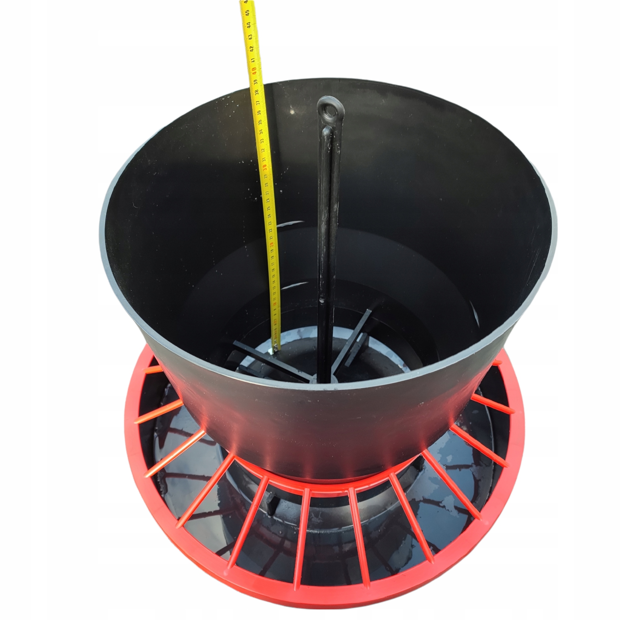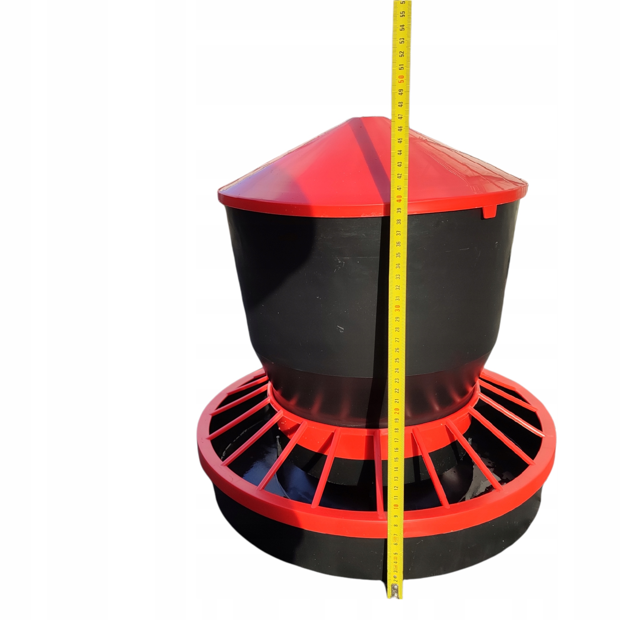 Червоний ковпачок запобігає проникненню птиці та забрудненню корму.