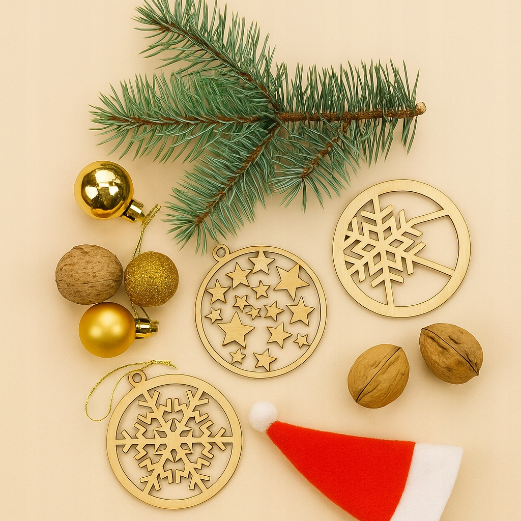 У зв'язку з наступаючим Різдвом ми можемо прикрасити коробку такими аксесуарами як: ялина, дерев'яні кульки, дрібнички, горіхи.