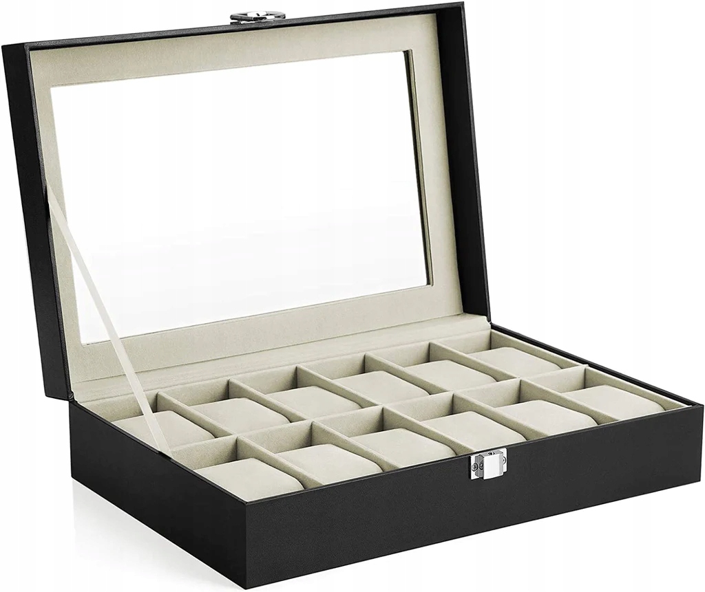 - Ця коробка для годинника від Songmics змусить ваші серця битися швидше, оскільки завдяки 12 відділенням із подушками ваші годинники будуть повністю захищені; Крім того, ваші друзі можуть милуватися своєю пишною колекцією завдяки скляній кришці у своїй пишності.
