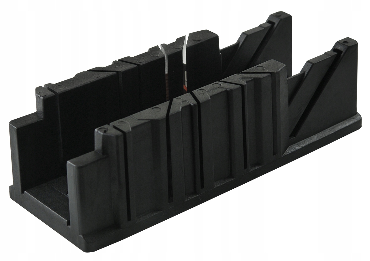 Ця коробка використовується як професіоналами, так і любителями домашньої саморобки. Завдяки ній точне різання елементів під потрібним кутом не є проблемою. Ідеально підходить для обрізки плінтуса дошки, брус, смуги пінополістиролу і т. д. Ящик виготовлений з міцного пластику, що забезпечує тривале використання.На кінцях є кріпильні отвори для кріплення ящика до стільниці, якщо це необхідно.