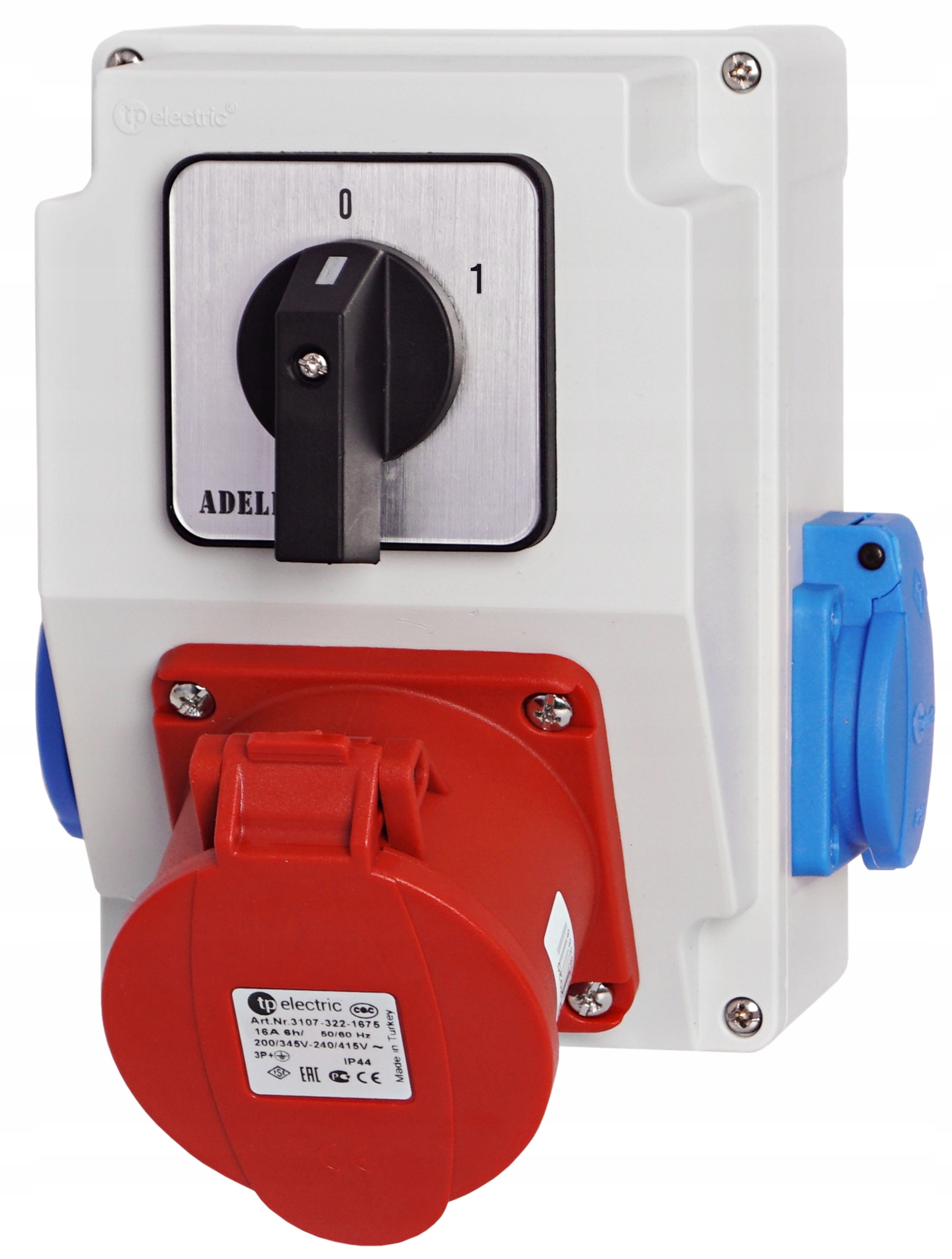Оригінальна електроенергія, бренд Adelid, з 16-польовою силовою розеткою, двома 230 В-розетками та 0-1.
