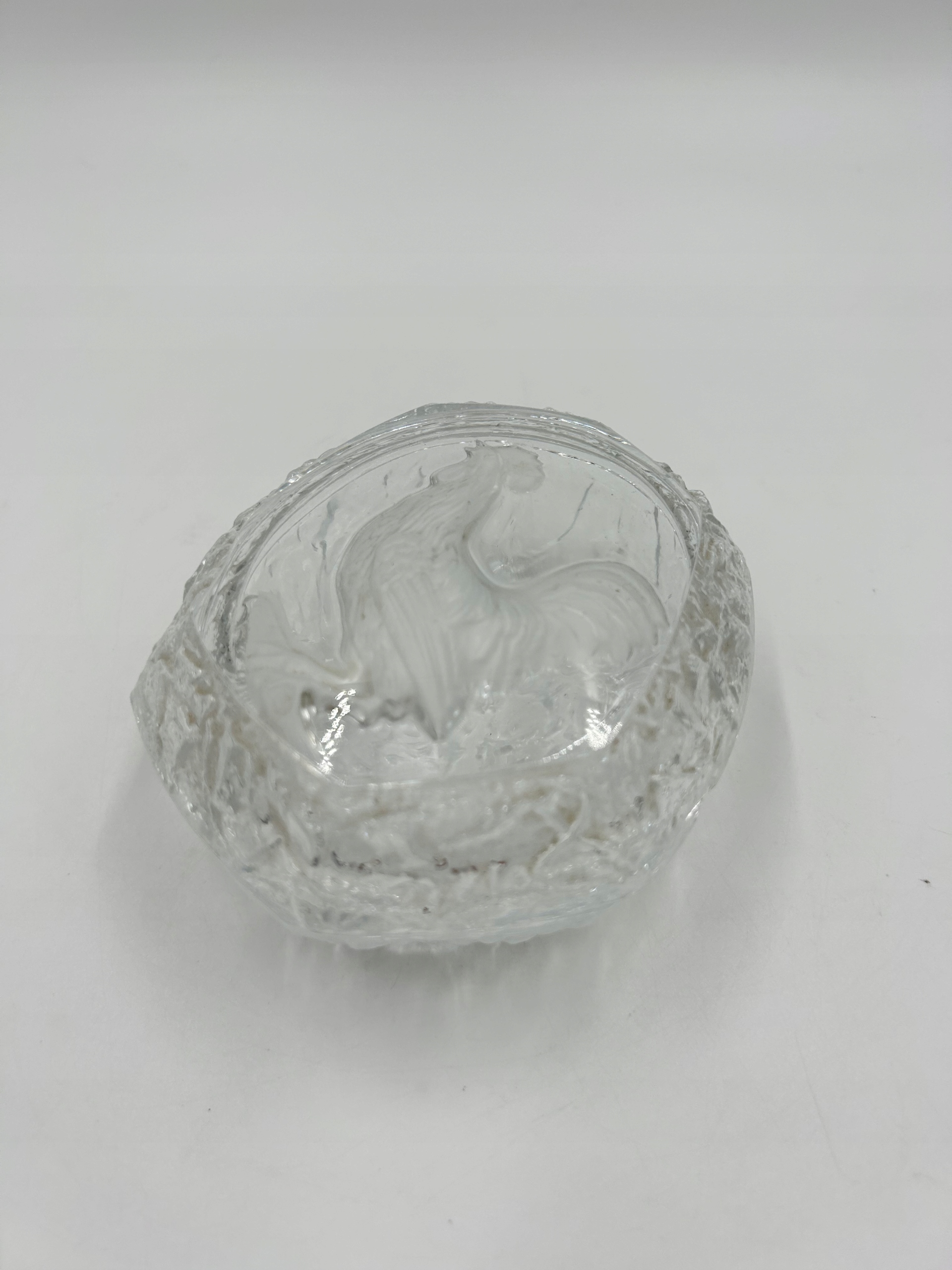 Предмет продажу кришталева шкатулка для дрібничок. Обкладинка прикрашена візерунком півня.