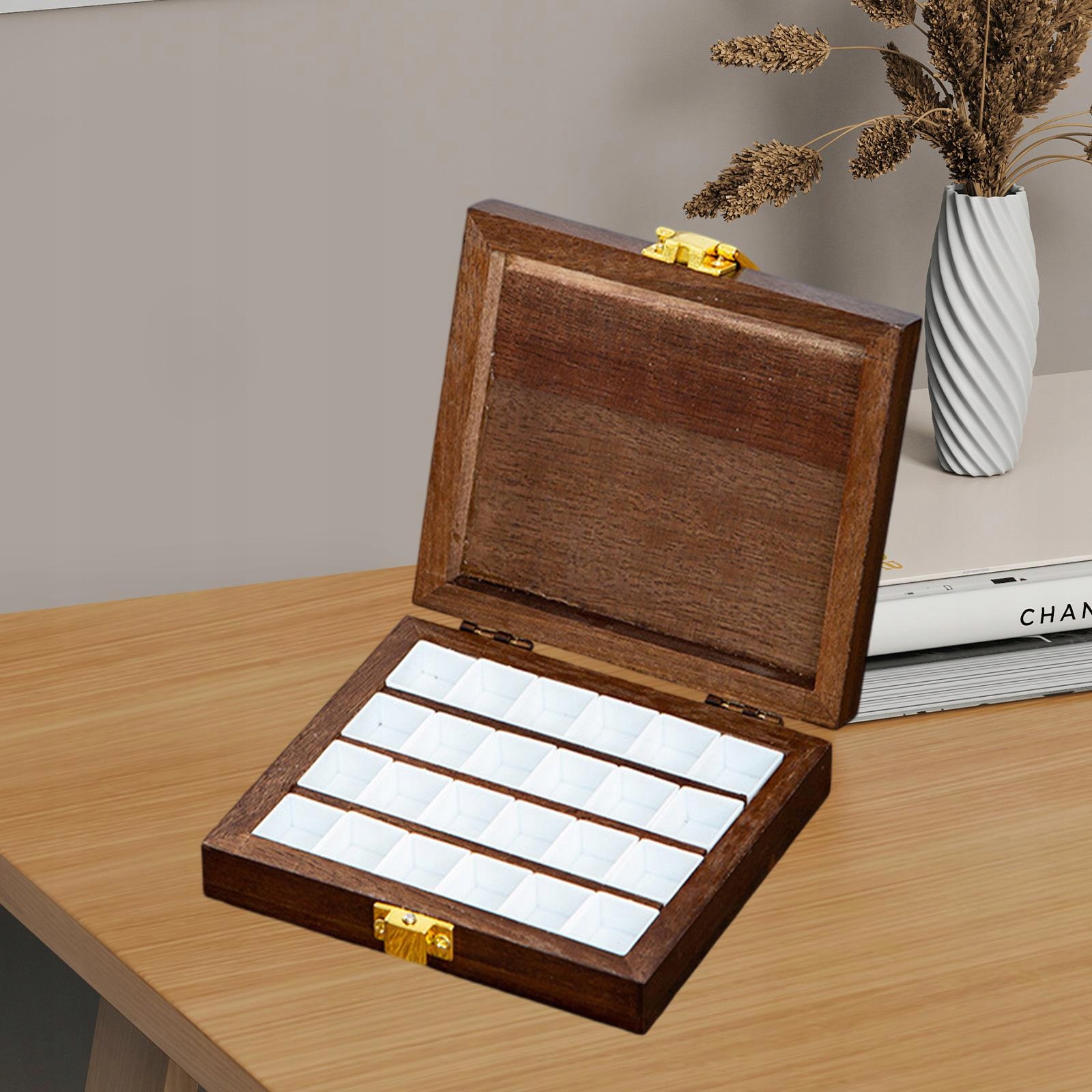 Коробка для акварельних фарб Контейнер для фарби Коробка для палітри акварельних фарб Лоток для фарби 24 решітки Горіх