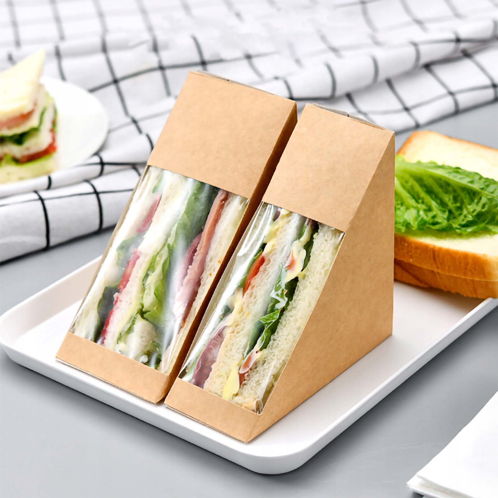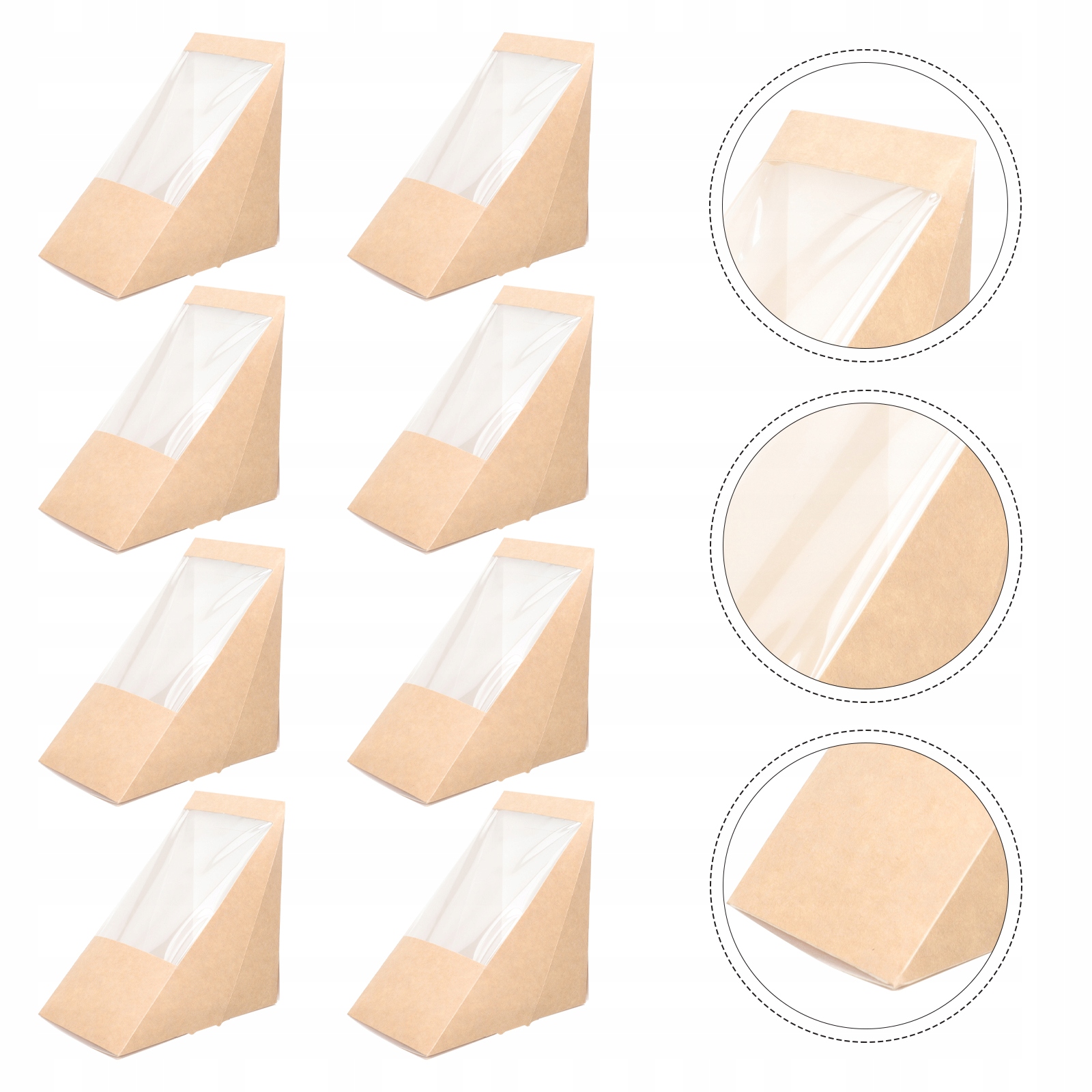 4 Наш продукт! Зроблений з найвищої якості та безпечного паперу, він має прозорий вікно, тому ви можете ретельно бачити їжу ззовні. Підходить для зберігання різних видів трикутних тортів або бутербродів.