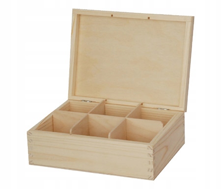 Коробка на 6 чаїв, БЕЗ ЗАКРИВАННЯ або для інших дрібниць, виготовлена з хвойних порід (ялина, сосна), не лакована.