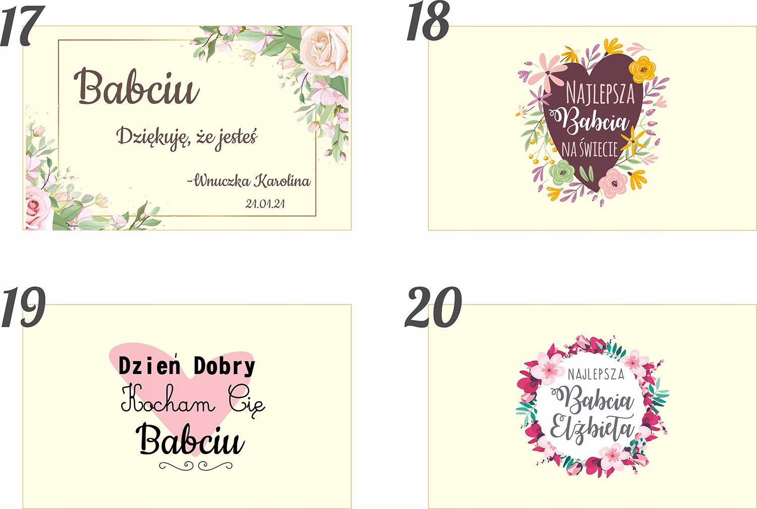 До Дня бабусі ми підготували красиві візерунки гравіювання, які ви можете змінювати за своїм бажанням. Викрійки друкуємо на верхній частині кришки коробки. Ця послуга включена в ціну пропозиції.