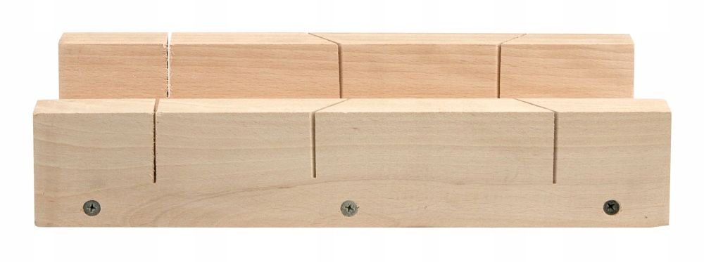 Коробка розміром 300х80 мм з деревини твердих порід. Використовується для точного ручного різання під кутом 90° та 45°. Корисно для обрізання, наприклад, смуг.