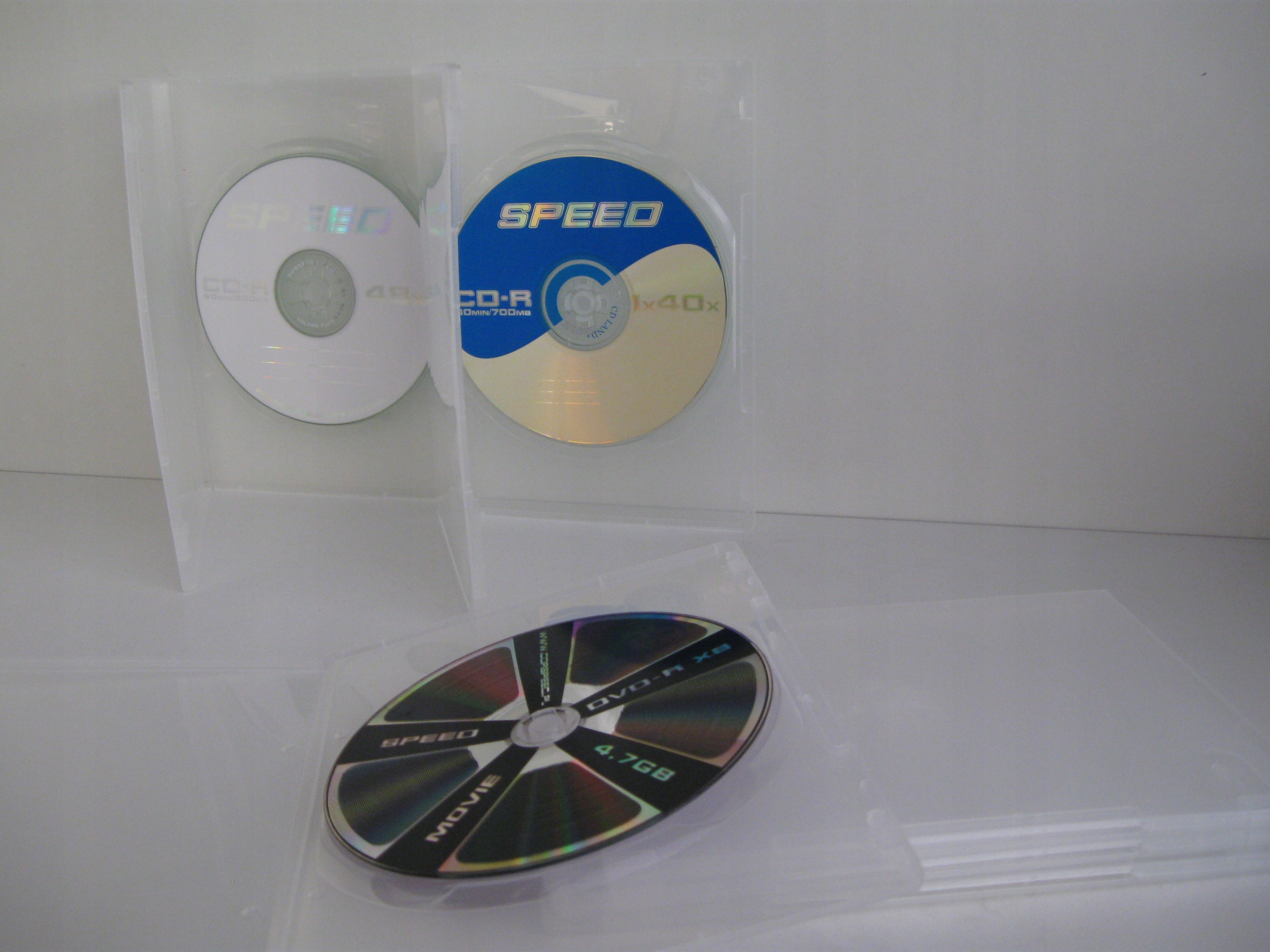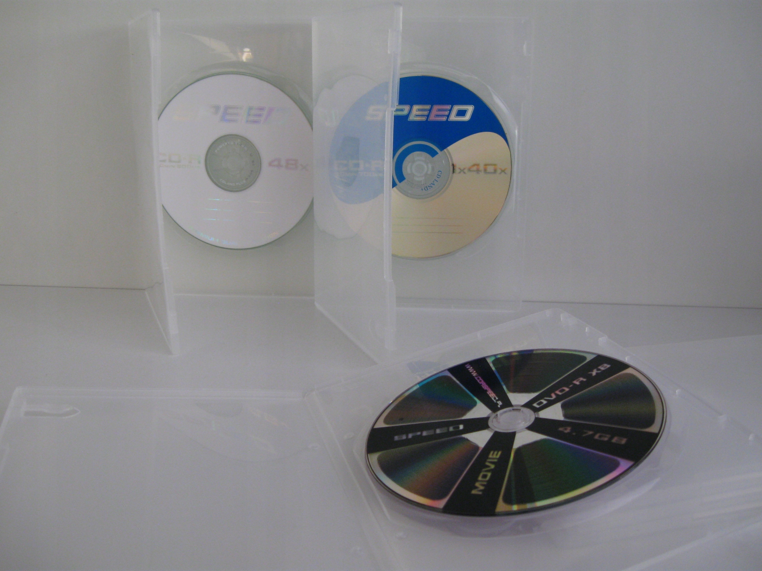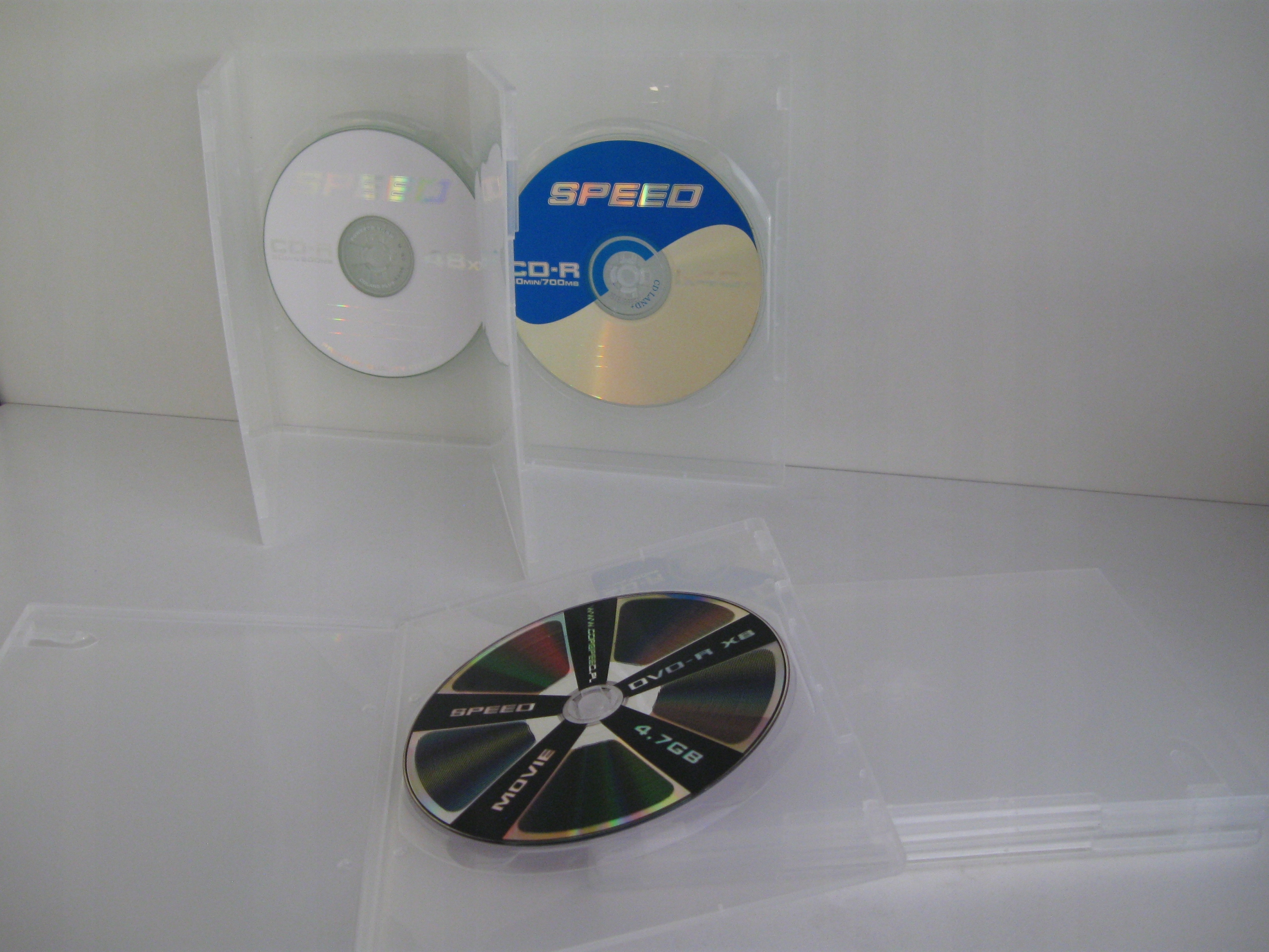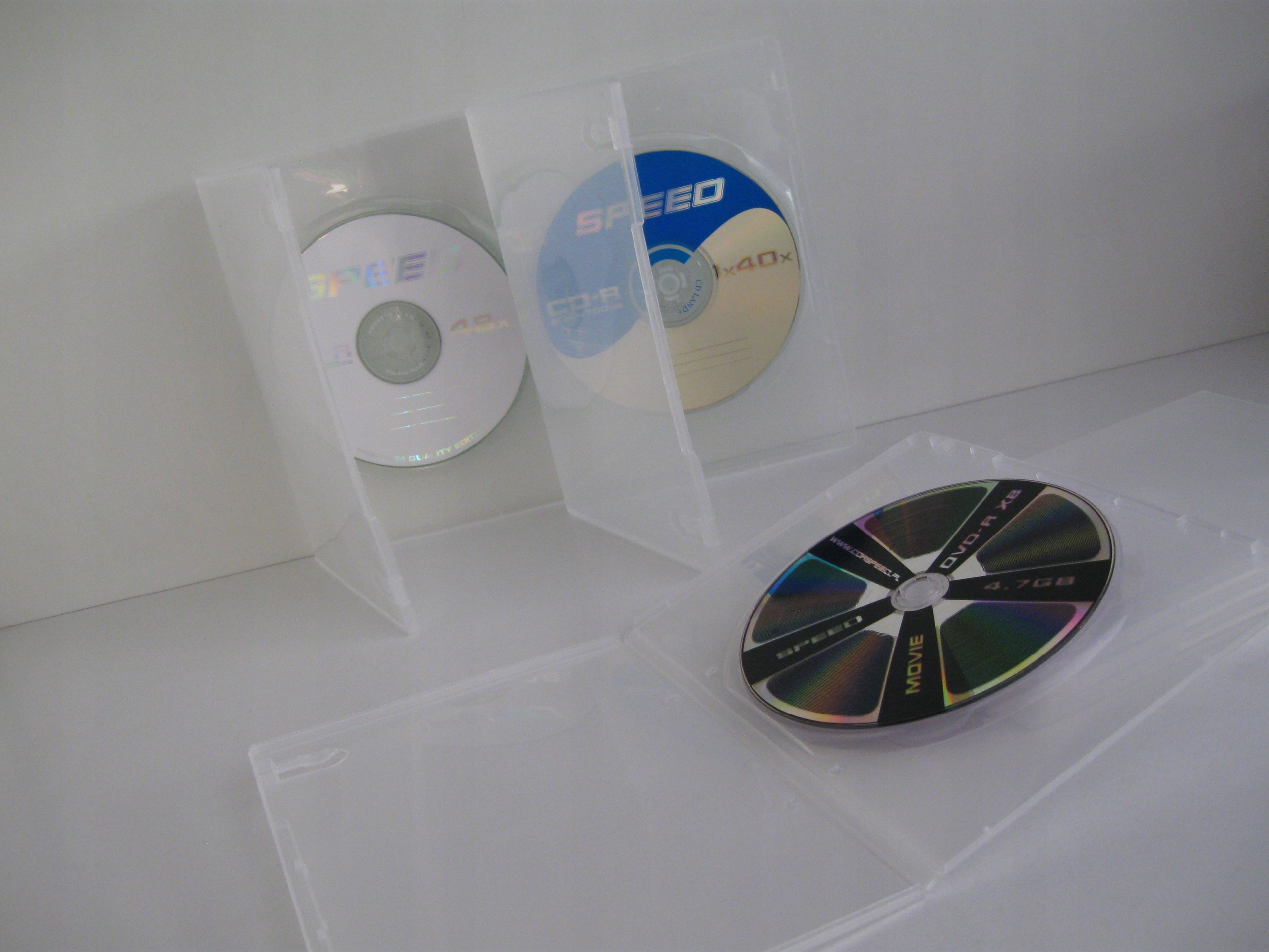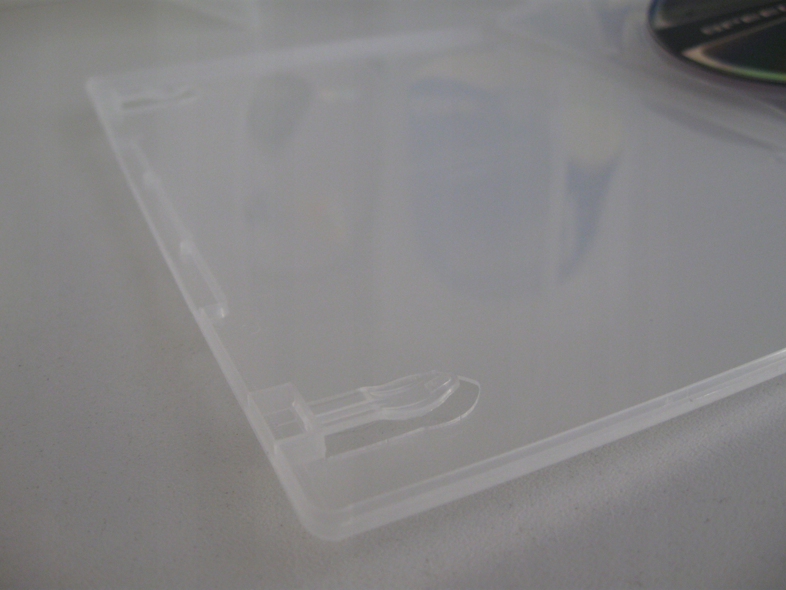 Коробка для одного DVD з безбарвного (фактично повністю прозорого) дуже гнучкого пластику товщиною 7 мм.