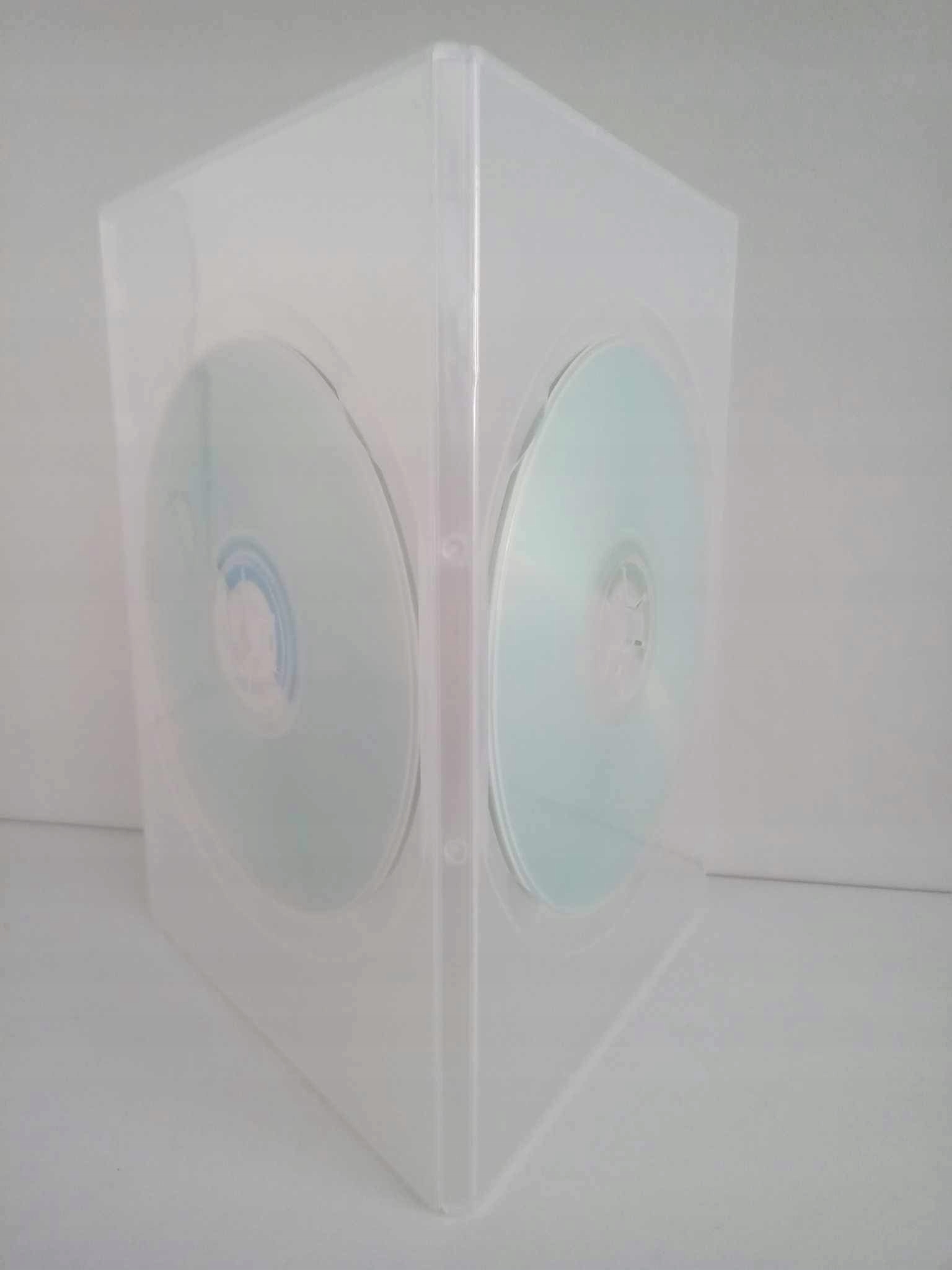 Коробка для двох DVD з безбарвного (фактично абсолютно прозорого) дуже гнучкого пластику товщиною 7 мм.