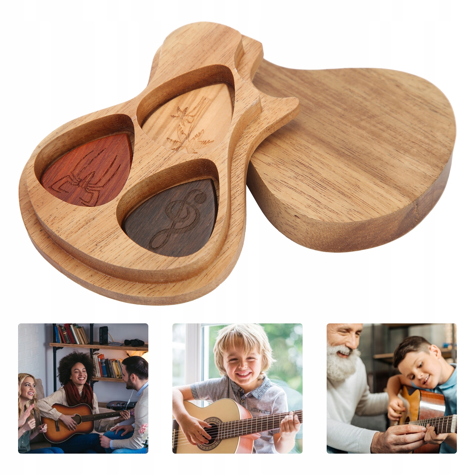 Коробка для гітарного медіатора, подарунок для гітаристів із масиву дерева, музичний інструмент 62