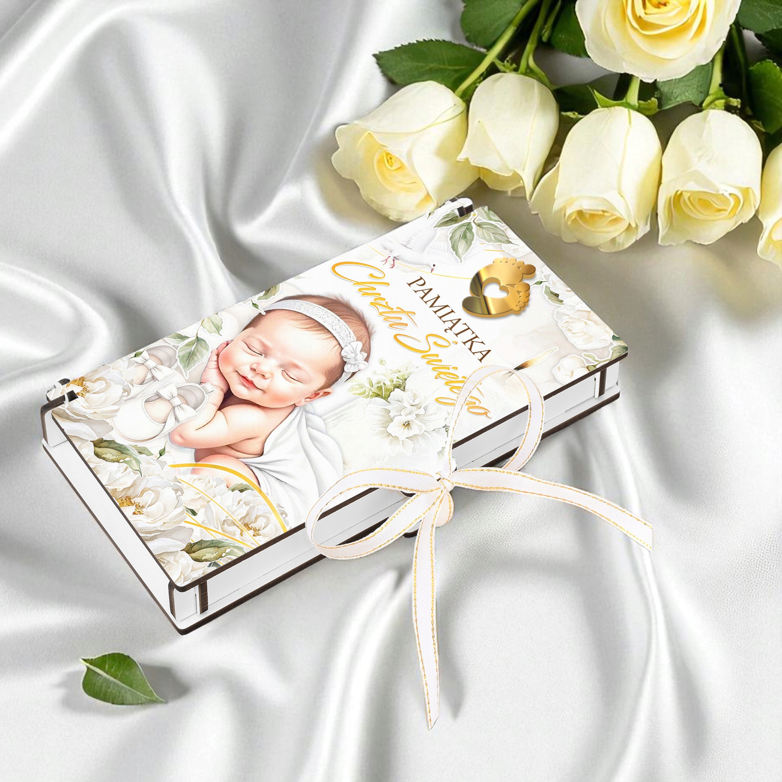 ⭐ Унікальний сувенір хрещення - елегантна дерев’яна коробка для грошей з персоналізацією, декоративною стрічкою та прикріпленими побажаннями!