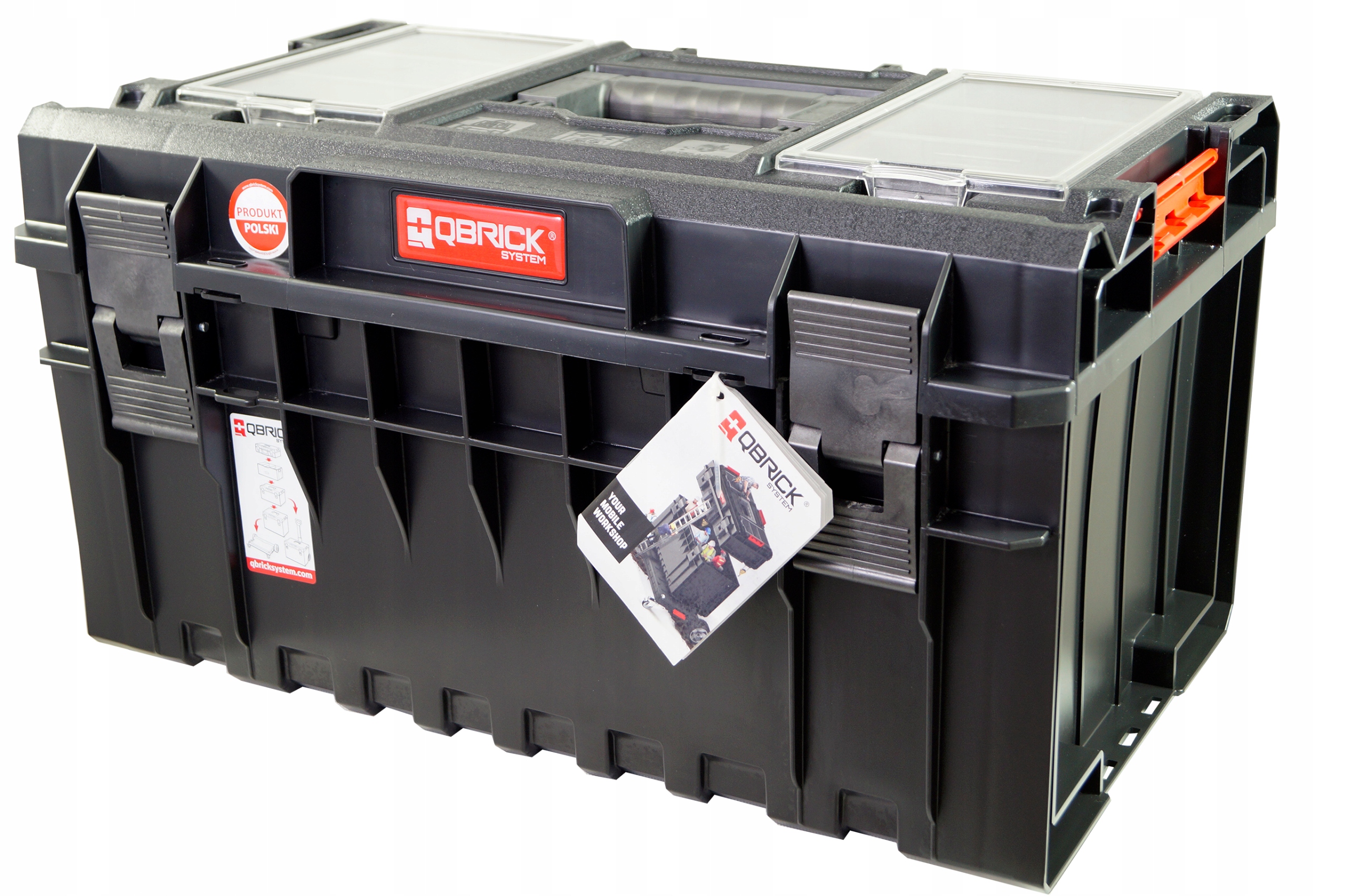 Його вантажопідйомність становить максимум 50 кг і він стійкий до перевантажень до 120 кг. Qbrick System One водонепроникний і пилонепроникний. Великі електроінструменти можна транспортувати в коробках серії System One.