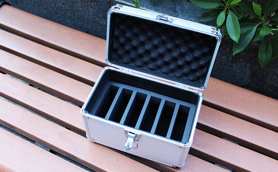 - Алюмінієва конструкція: вантажопідйомність 100 кг, міцна та довговічна, її важко деформувати. 6 панелей виготовлені з композиту дерево + срібна алюмінієва фольга. Внутрішня розетка виготовлена з матеріалу EVA високої щільності. Внутрішня верхня частина — це дуже гнучка гофрована губка для захисту жорсткого диска.