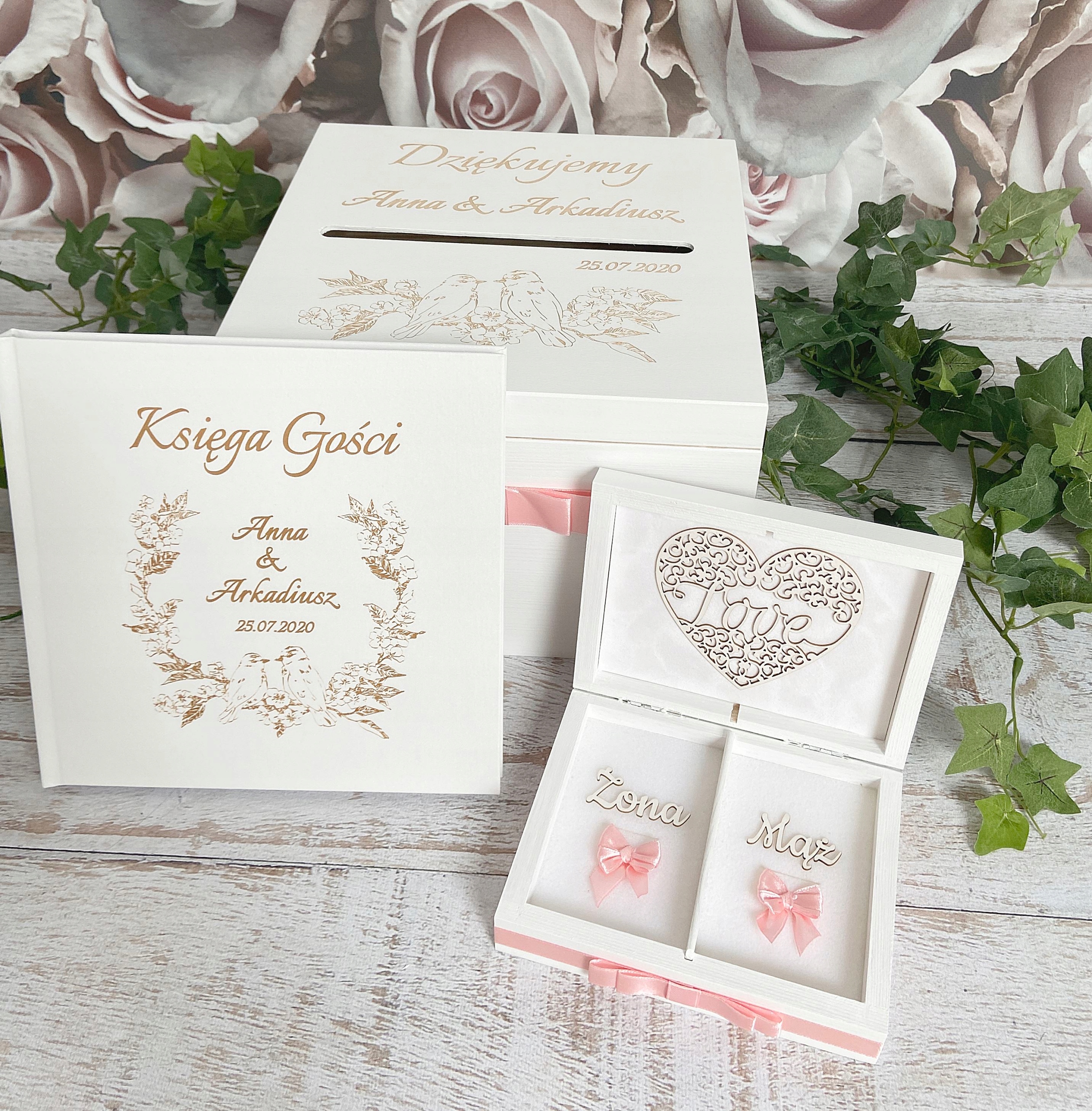 На обкладинці вигравірувані імена та дата весілля