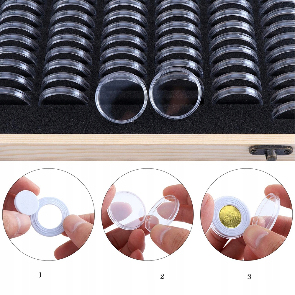 - Може вмістити 100 пластикових капсул для монет, що є практичним і міцним.