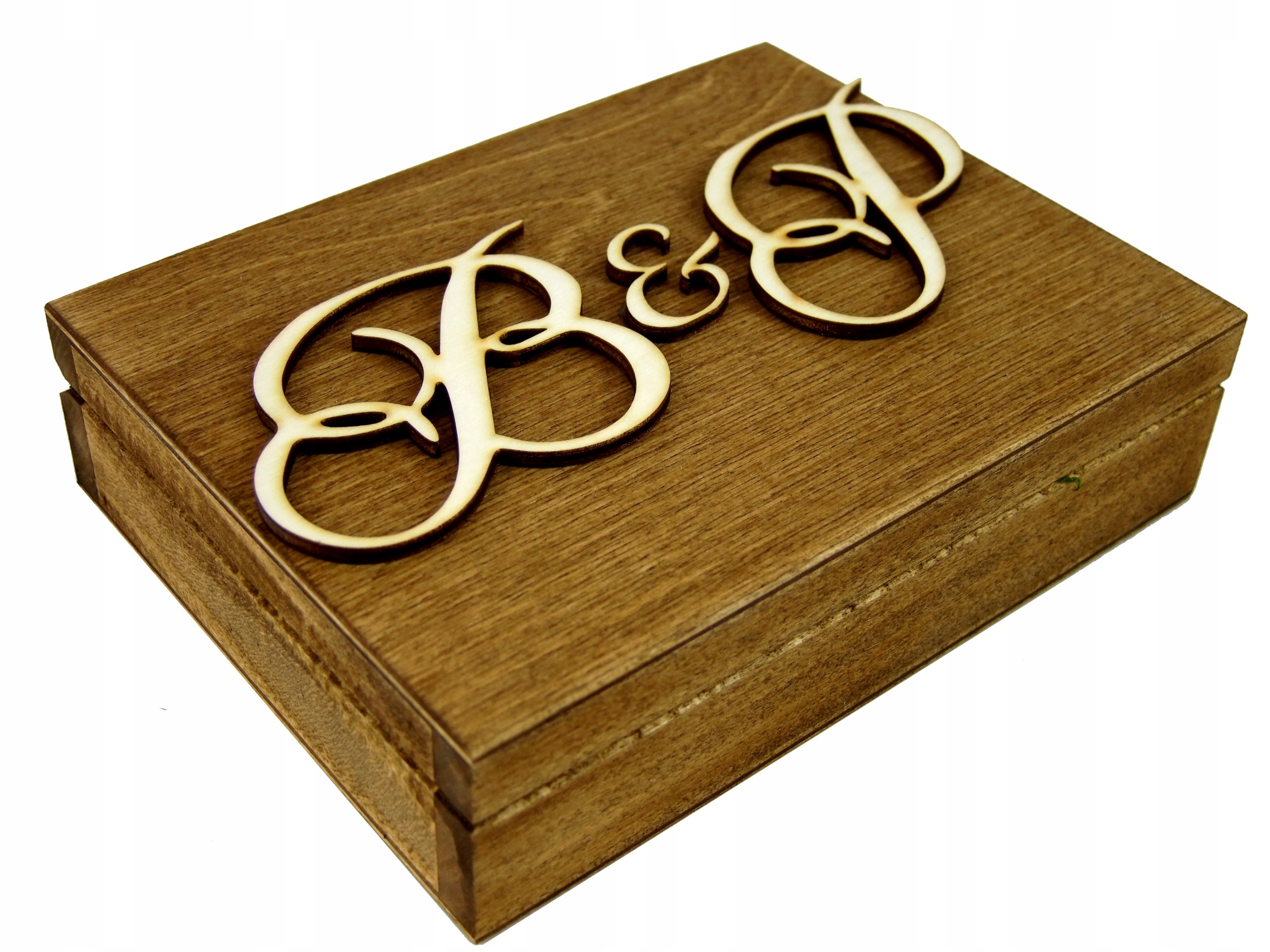 на передній частині коробки є лист подякиІніціали нареченого і нареченої