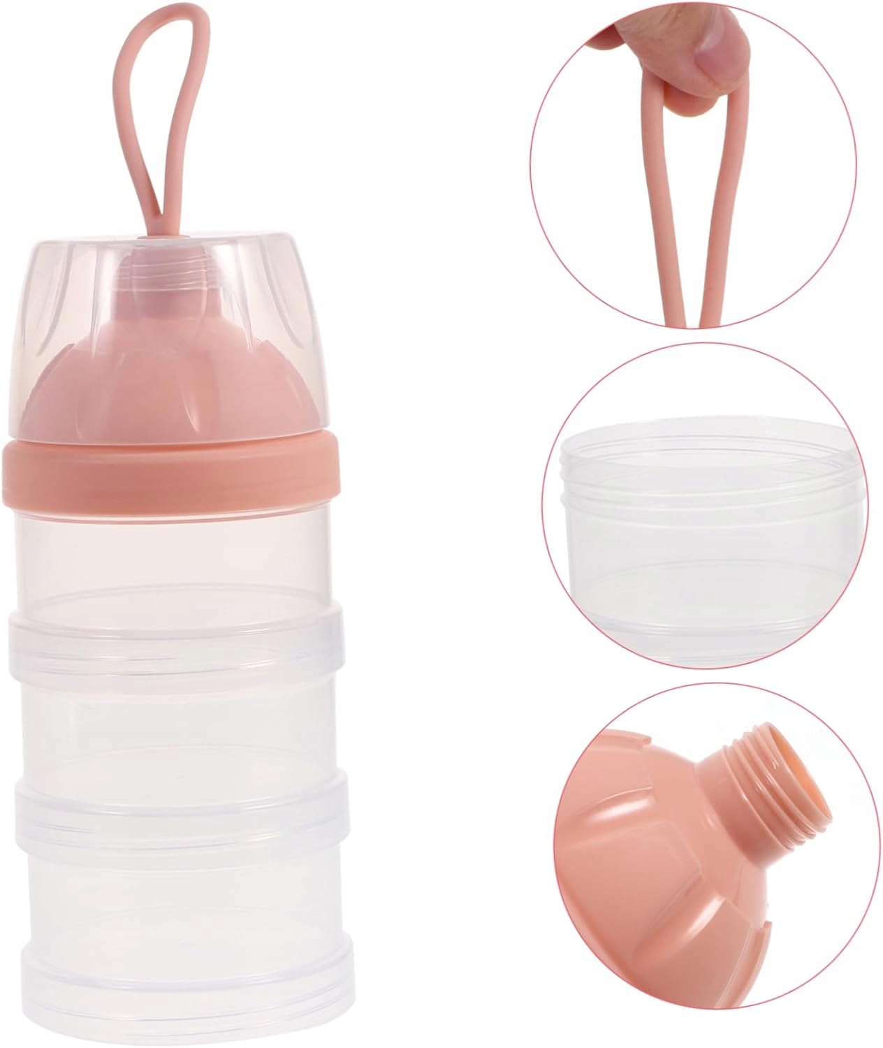 Конструкція контейнера для сухого молока з трьома відділеннями дозволяє індивідуально розливати сухе молоко та запобігає намокання залишків сухого молока. Завдяки підвішуваній мотузці для постійного носіння він ідеально поміщається у вашій руці та сумці для зручності під час відвідин. Дозатор дитячого сухого молока, кожне відділення можна відкрити та використовувати незалежно, ефективно захищаючи свіжість. Тримач молочної суміші - кожен шар цього тримача молочної суміші знімний, що допомагає годувати точно та швидко. Дорожній контейнер для дітей, кожне відділення знімне і вміщує сухе молоко, рисове борошно, пшеничне борошно та інші додаткові інгредієнти.