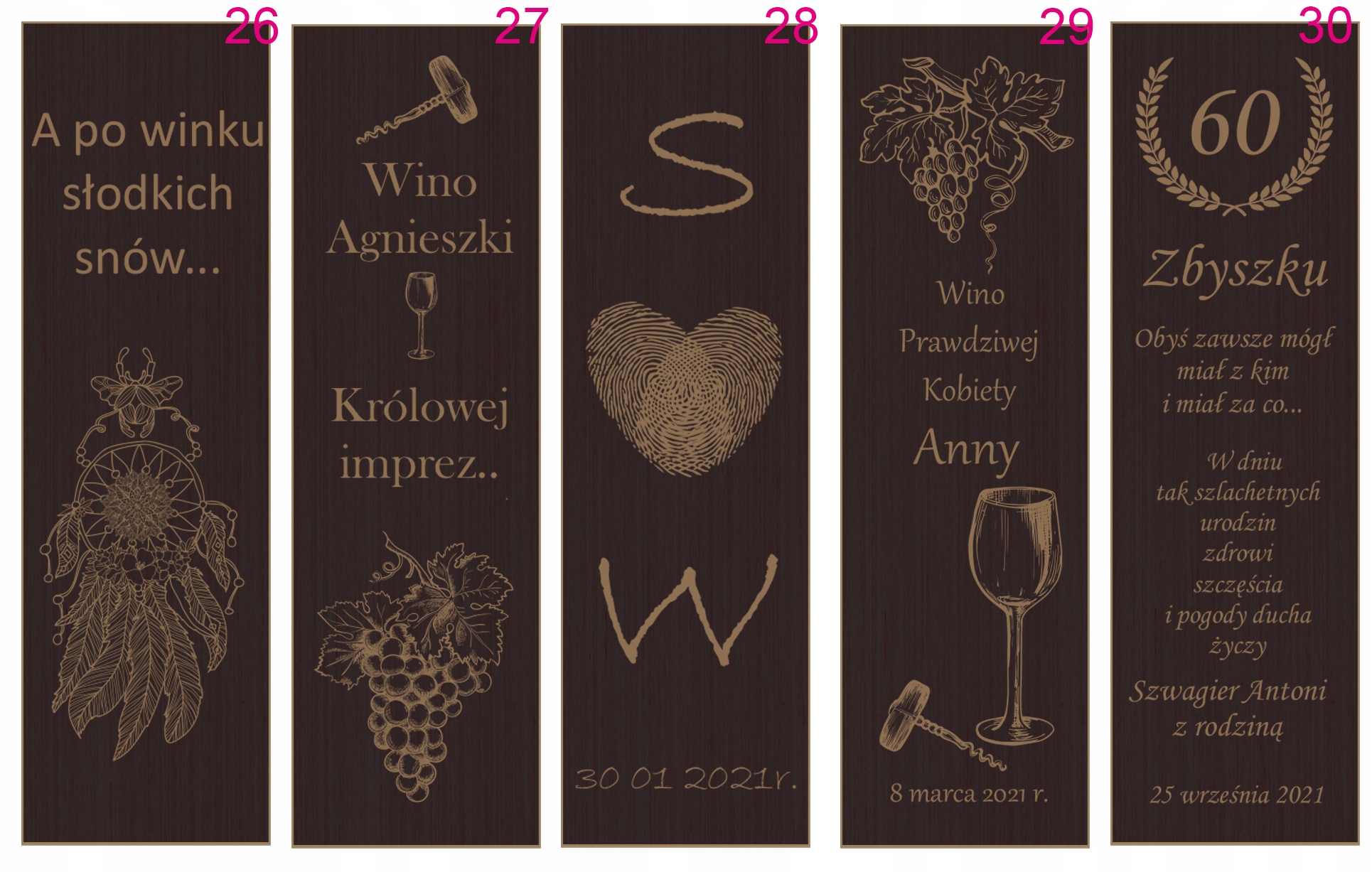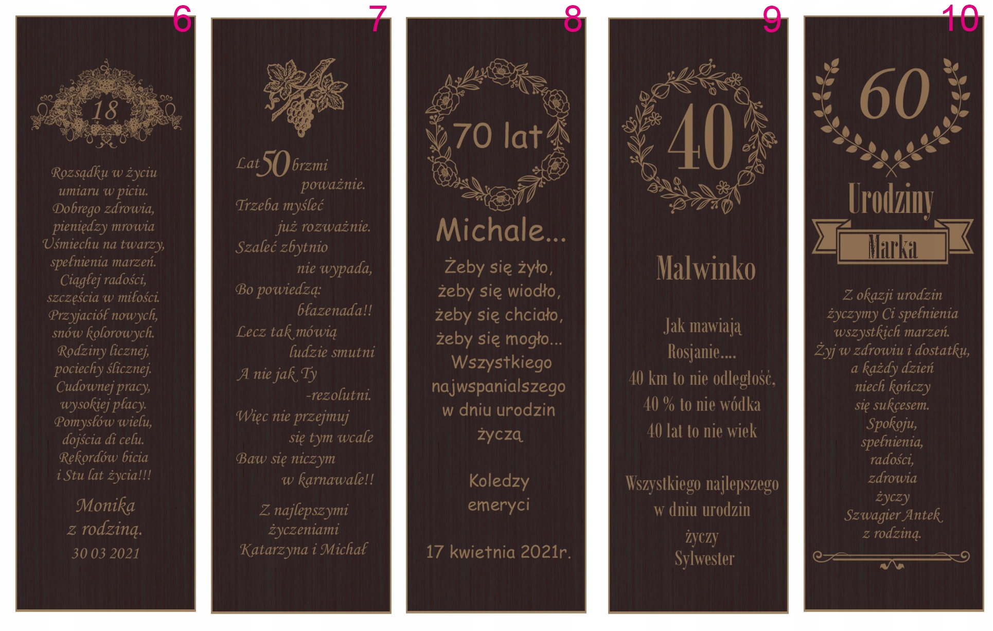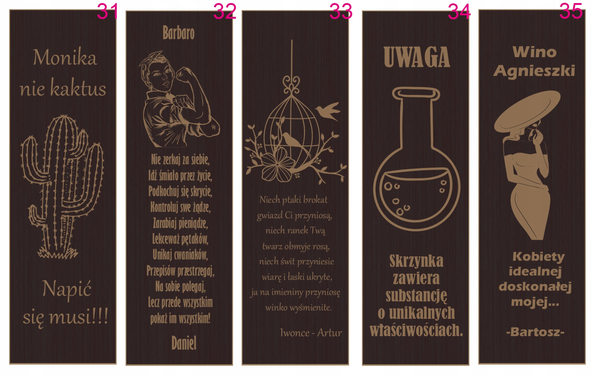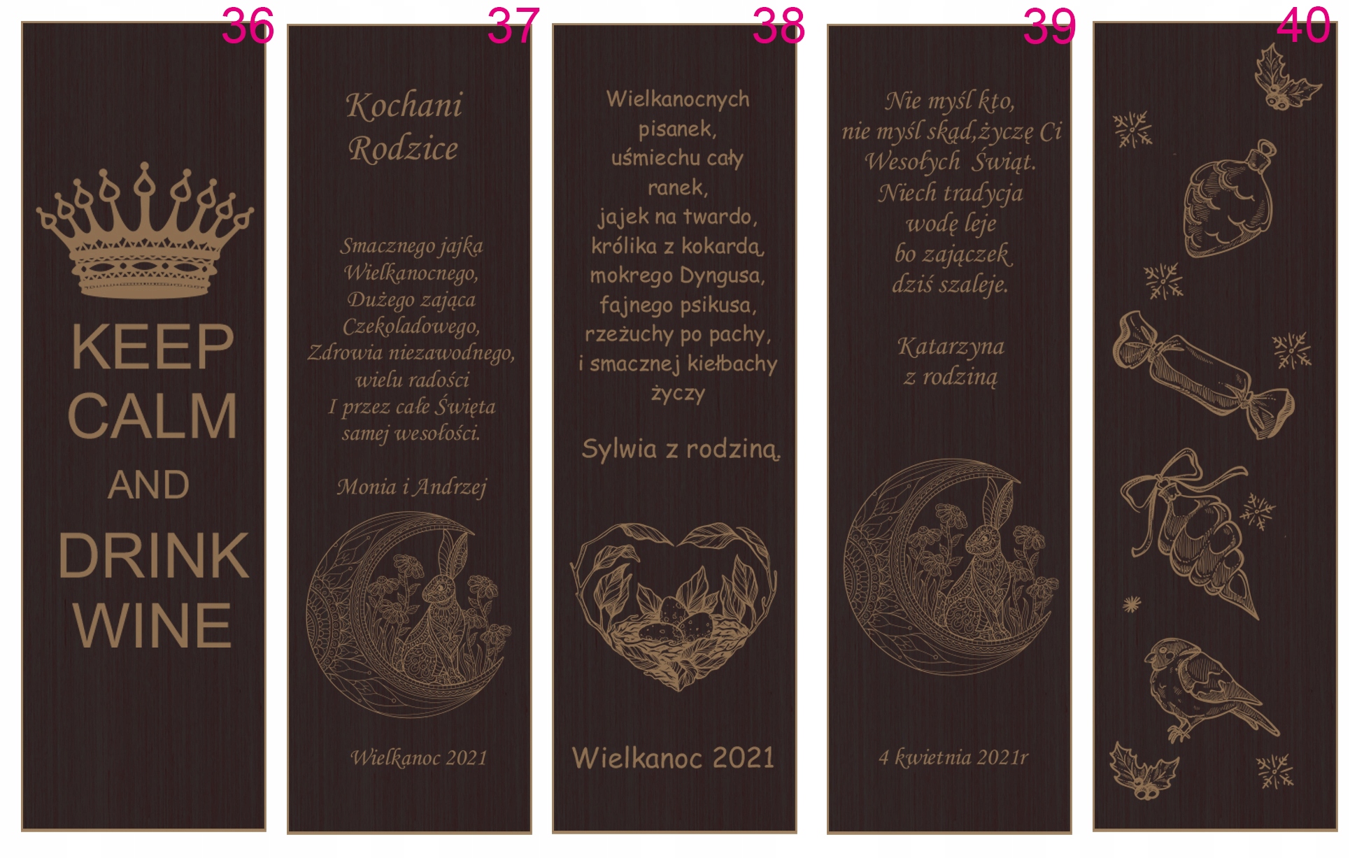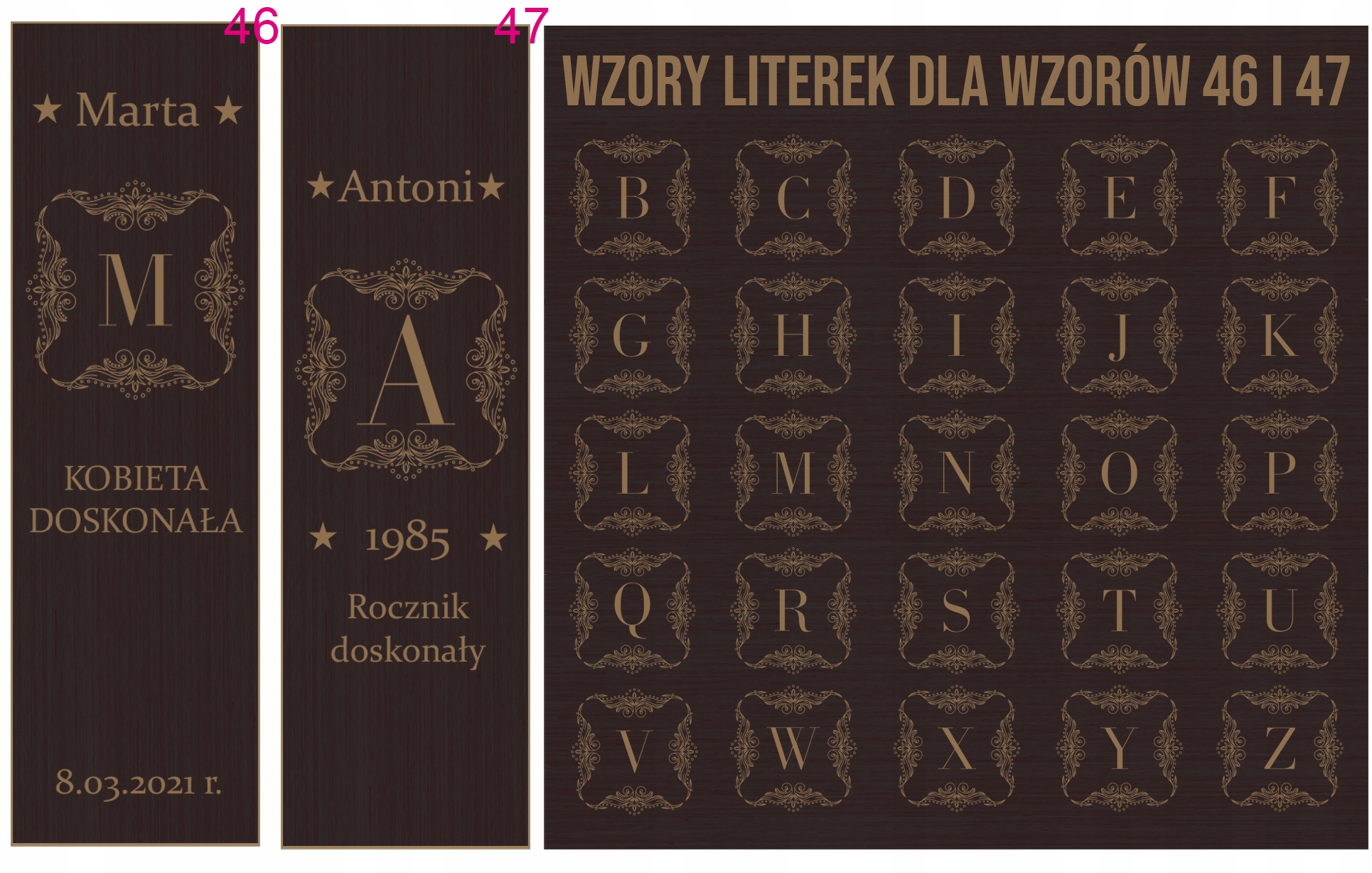 Текст вигравірувано на зовнішній стороні коробки. Клієнт може вибрати візерунок гравіювання (один із наведених нижче) та його персоналізований вміст (відповідно до шаблону), який слід надіслати продавцю в повідомленні.