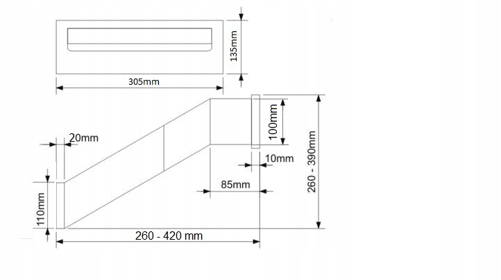 - ПЕРЕДНЯ ПАНЕЛЬ: 305 x 135 мм
