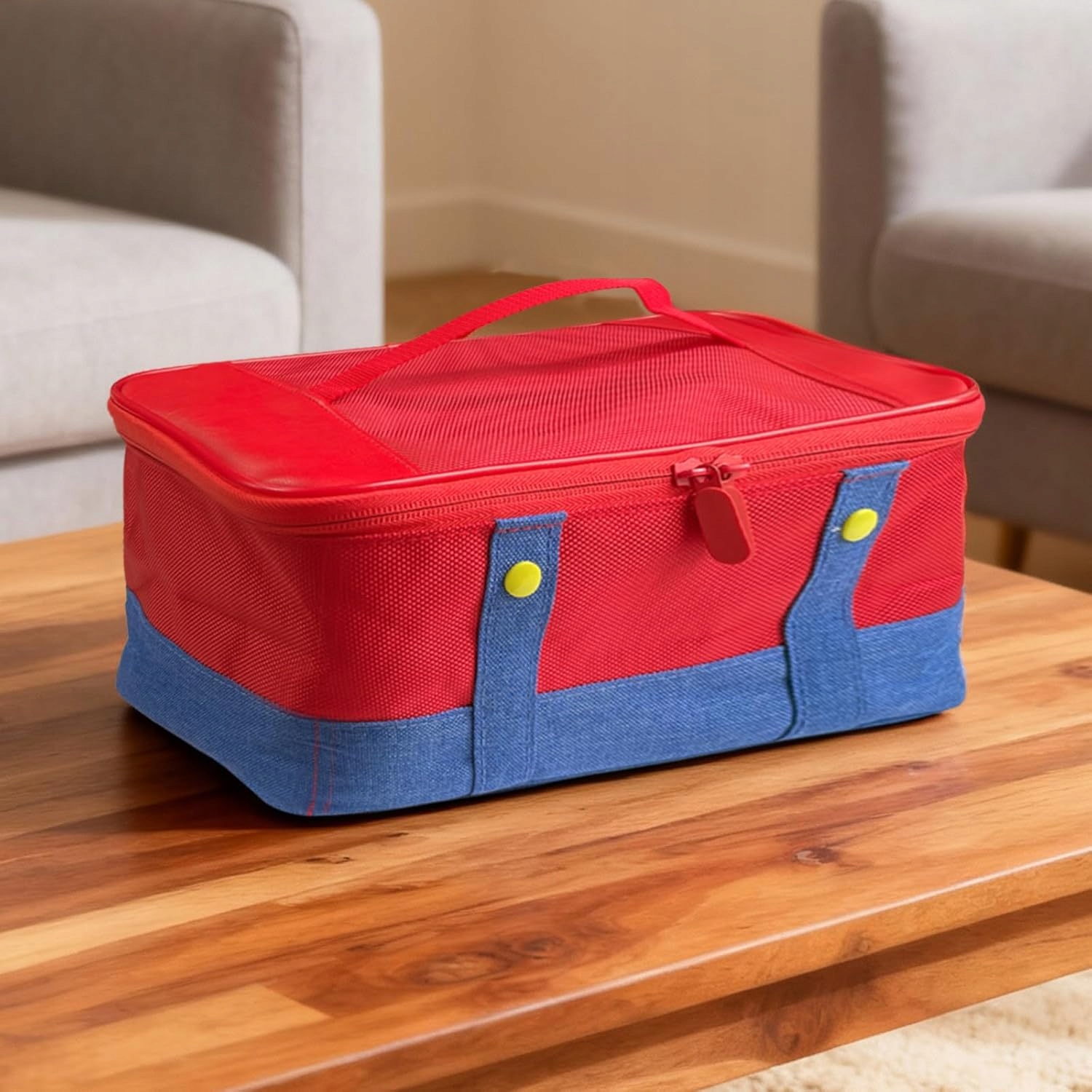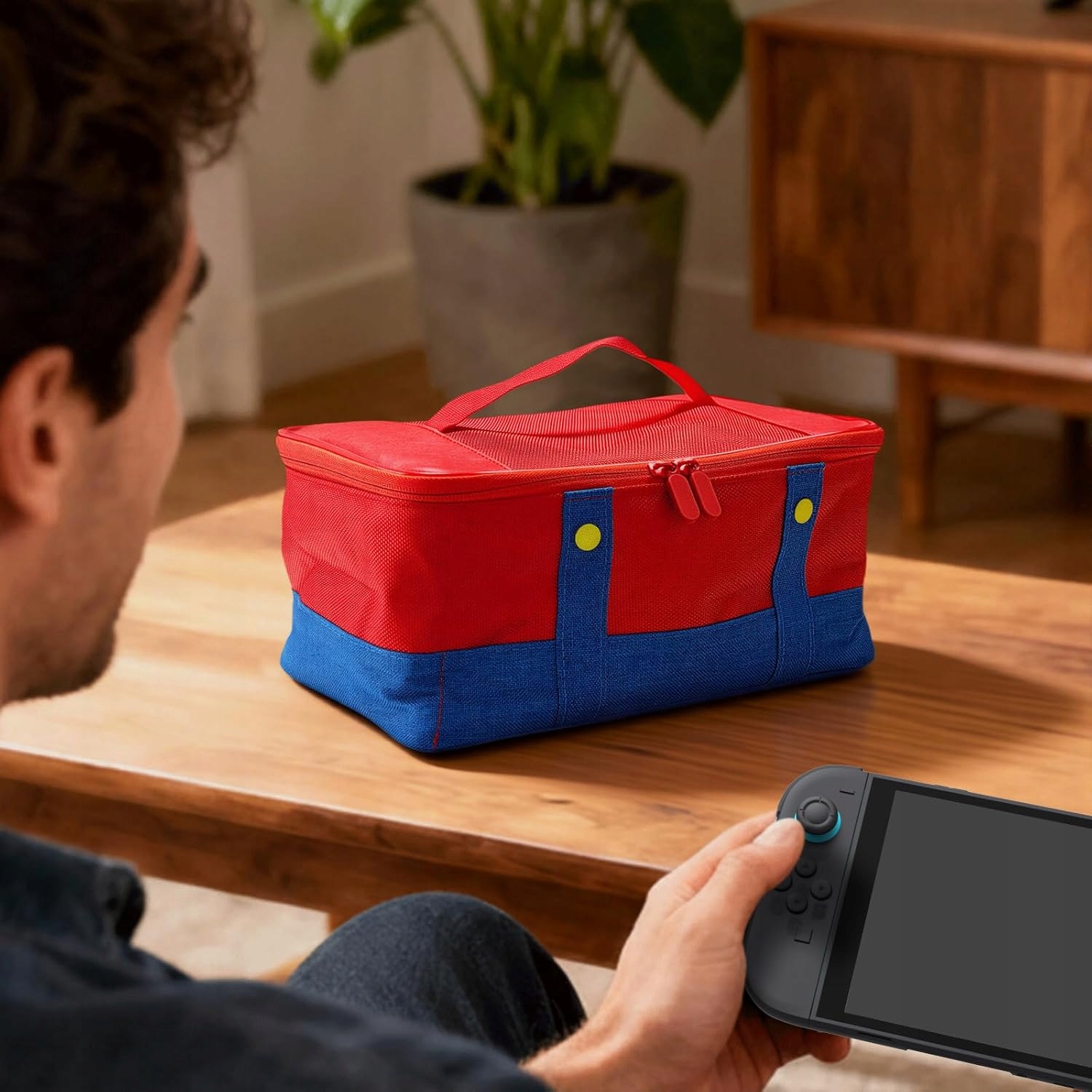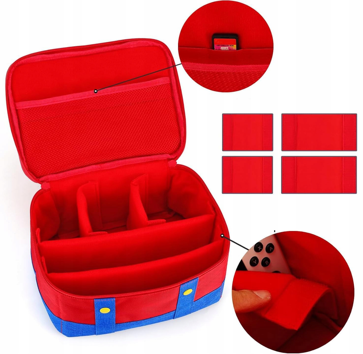 ✅✅✅[Стильний і унікальний] Наш дорожній чохол має яскраву червоно-синю кольорову гамму, натхненну популярними ігровими персонажами, що додає вашому спорядженню стильного відтінку. Він не лише захищає та впорядковує аксесуари для вашої ігрової консолі, але й підкреслює вашу індивідуальність, роблячи його ідеальним для щоденного використання чи довгих подорожей.