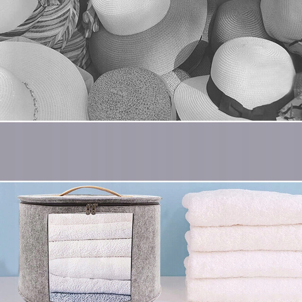 👒【Свіжі повстяні тканини】 Наші великі коробки для капелюхів виготовлені з високоякісної повстяної тканини, яка не забруднює навколишнє середовище та не має специфічного запаху, а сучасне виробниче обладнання використовується для виготовлення повстяних прокладок високої щільності, які дуже стійкі до ваги, міцні та мають тривалий термін служби. Усі тканини міцні, повстяні, прості у догляді. (Просто протріть вологою тканиною та очищуйте за потреби!)