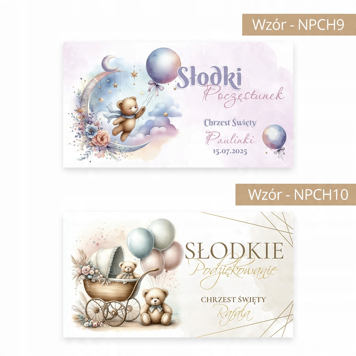 Ми можемо запропонувати з найвищої якості елегантних ящиків для тортів з персоналізованою наклейкою. Набір складається з коробки та наклейок у кількості 10 шт. , які ви можете легко розмістити у власному коробці. Коробки для тортів будуть чудовою формою подяки гостям за те, що вони приїжджали та брали участь у такий важливий день, як хрещення нашої дитини. з ручкою)
