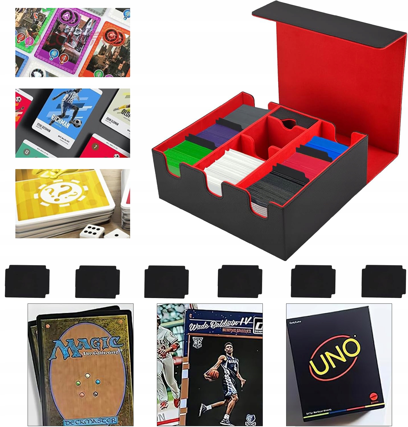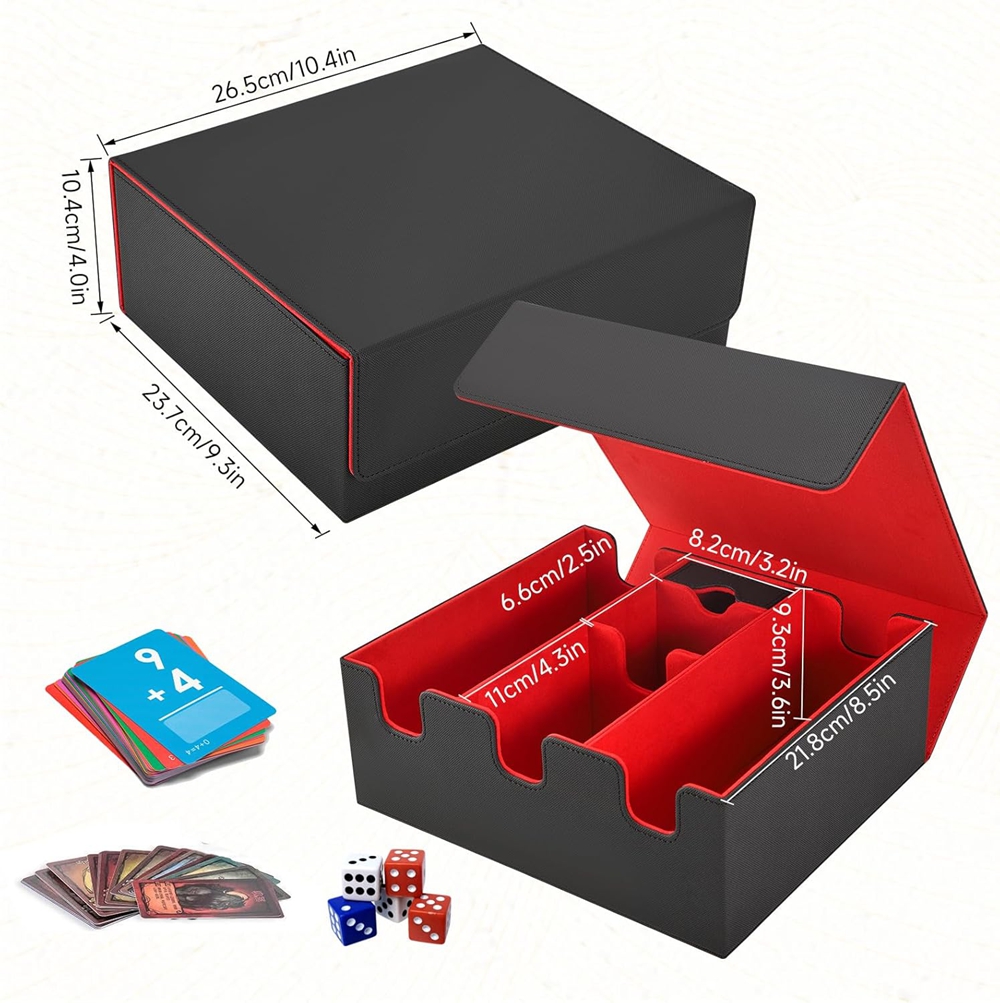 💥, дякую, у великому просторі зберігання може легко зберігати понад 1500 карт (без футболок карт). Міні -ящик посередині можна використовувати для зберігання кісток та аксесуарів для карт.