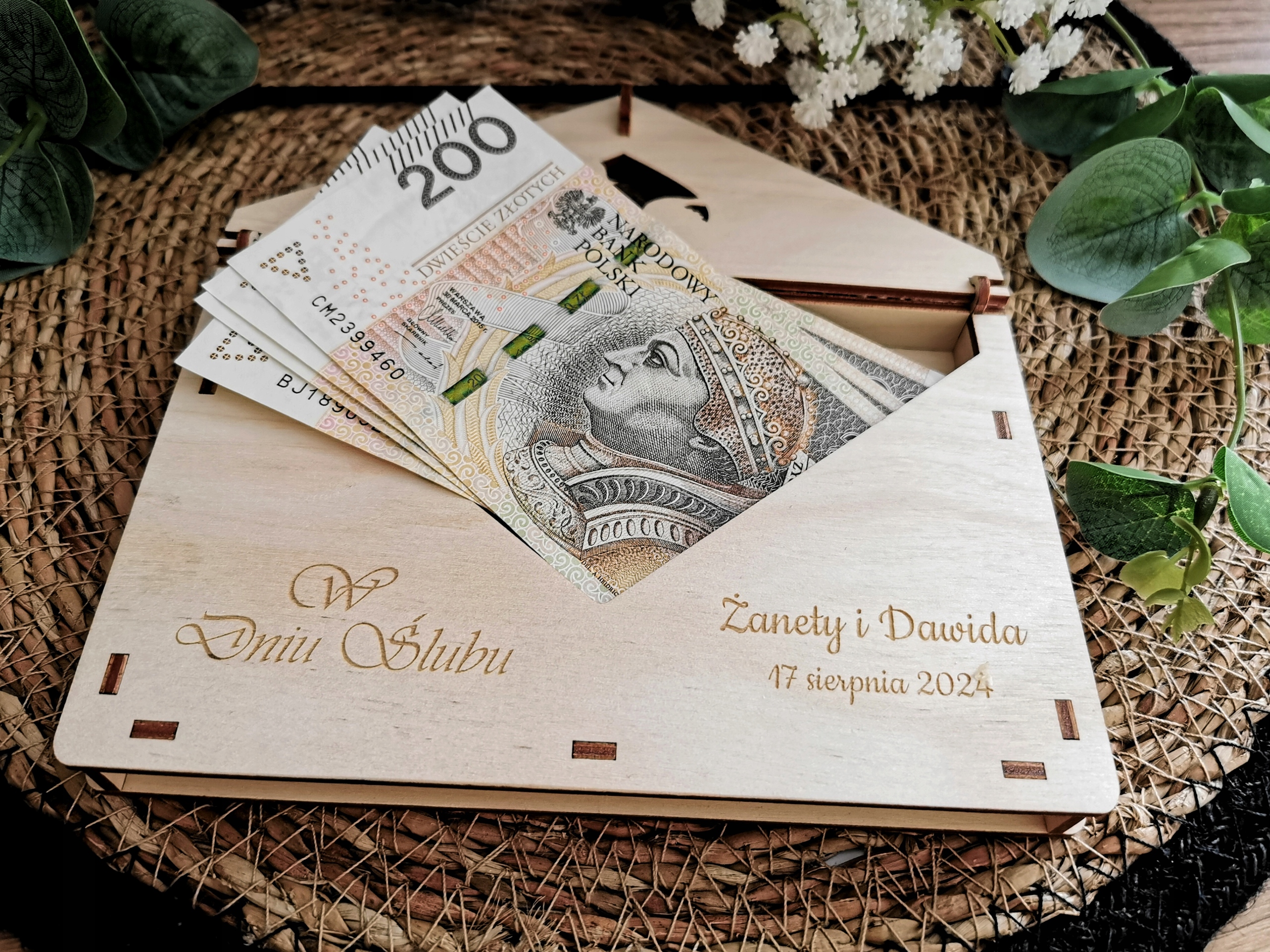 Коробка-конверт для грошей весільний подарунок персоналізація гравіювання