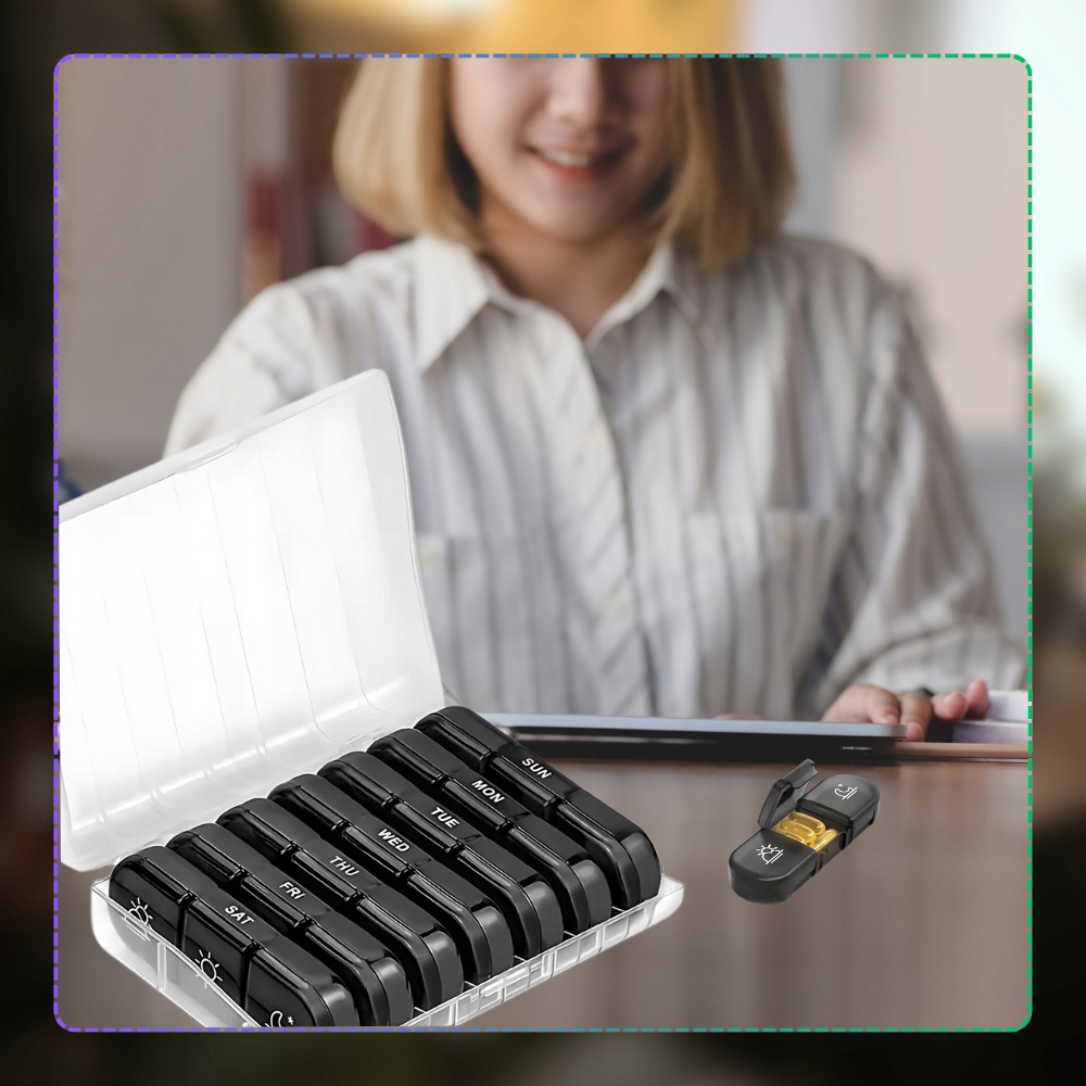 ✅ Впорядкуйте свої препарати або добавки просто та зручно завдяки нашому контейнері для ліків для ліків ! Це практичний інструмент, який допоможе вам спланувати дозування на цілий тиждень, розділений на три рази дня: ранок, південь та вечір. Завдяки прозорому дизайну та розбірливих маркувань, шкатулка полегшує контроль над наркотиками, що робить його ідеальним рішенням для людей похилого віку, хронічно хворих та всіх, хто дбає про регулярність у добавці. Функціональність та зручність використання