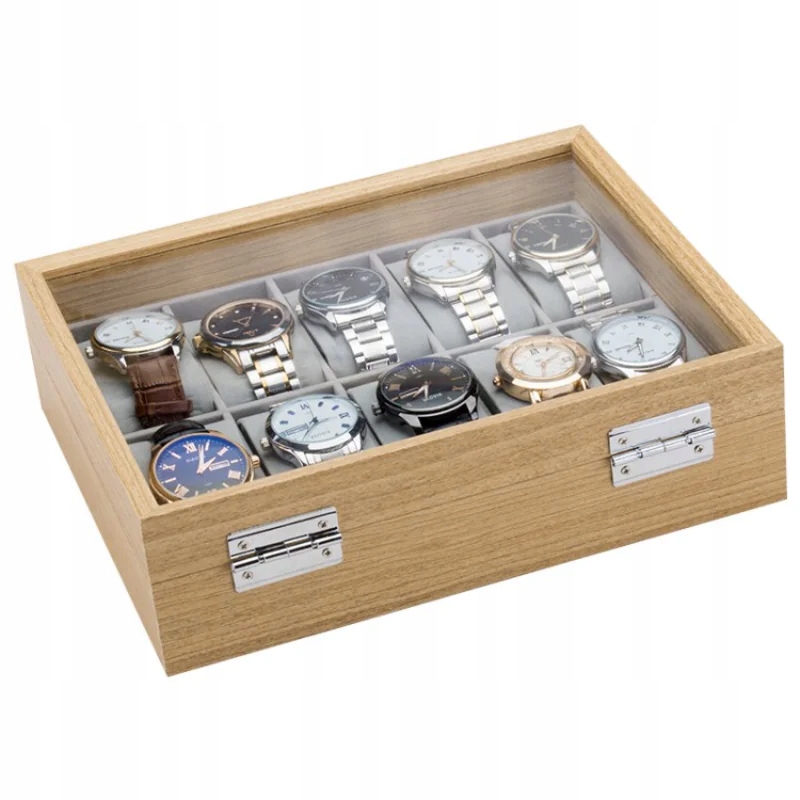 Скринька на 10 годинників. Він надзвичайно практичний і чудово захищає годинник від механічних пошкоджень. Найважливіша інформація: - висока якість виготовлення; - забезпечить захист ваших годинників; - внутрішня частина наповнена м'яким плюшем. Розміри: - 26 х 21 х 7,5 см - 10 відділень всередині: 4,5 х 9,0 см - 10 х подушок: 4,7 х 7,8 х 3,4 см